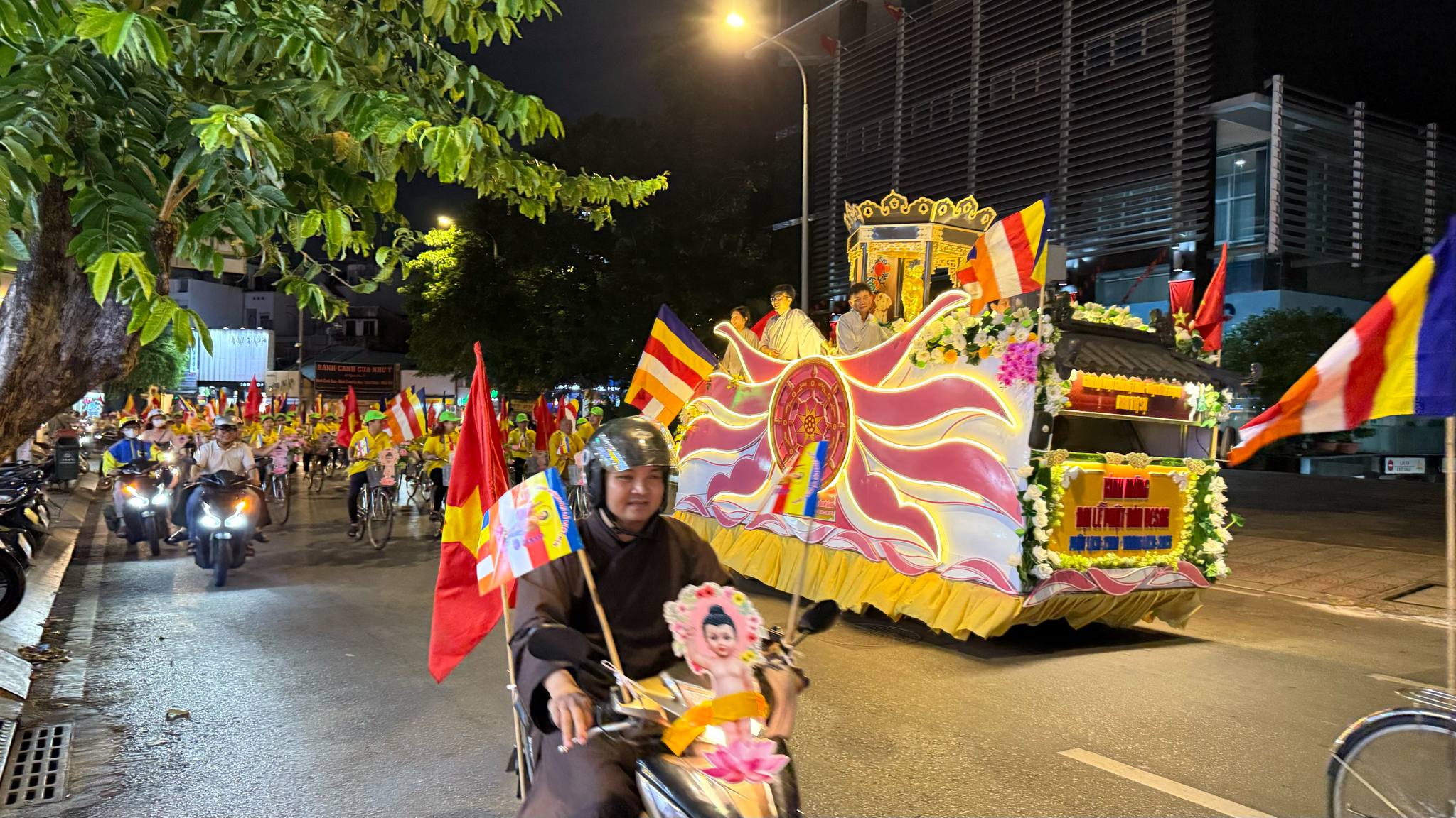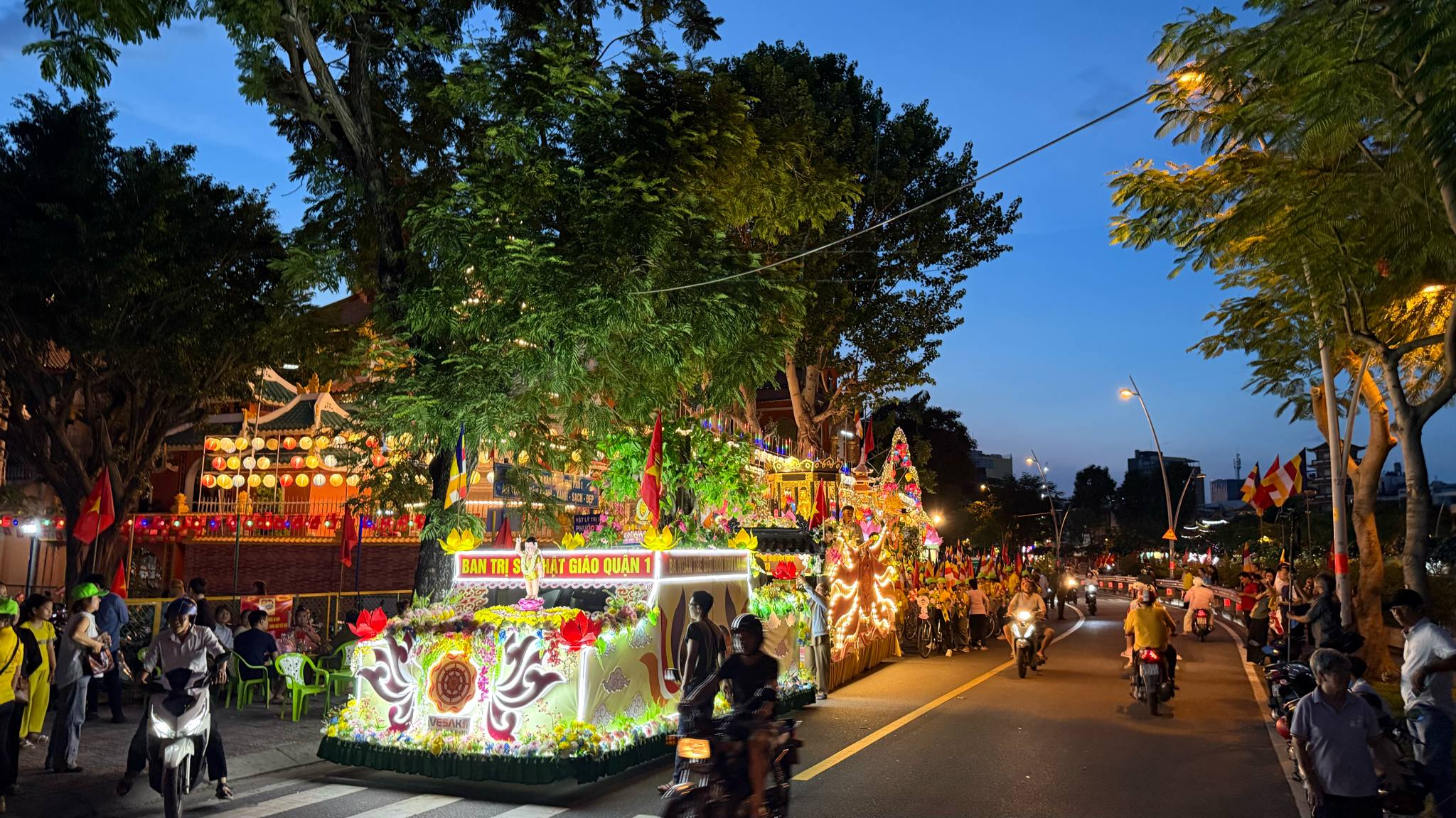 Tối ngày 11/5/2025 (nhằm ngày 14/4/ Ất Tỵ), hòa trong không khí hân hoan của Đại lễ Phật đản PL.2569 – DL.2025, Ban Trị sự GHPGVN quận 1 đã tổ chức diễu hành xe hoa qua những tuyến đường chính trong quận. Đây cũng là một trong những hoạt động trọng điểm của Phật giáo quận nhà nhằm tôn vinh sự ra đời của Đức Từ Phụ Thích Ca Mâu Ni.