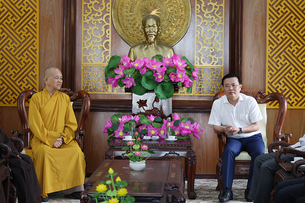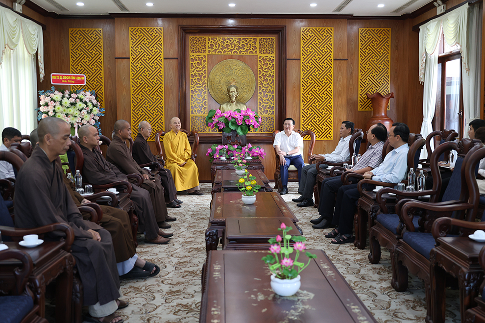 Thay mặt đoàn, Hòa thượng Thích Minh Thiện – Trưởng ban Trị sự Giáo hội Phật giáo Việt Nam tỉnh, bày tỏ lòng tri ân sâu sắc đến lãnh đạo Tỉnh ủy, cùng các cấp, các ngành trong tỉnh đã luôn quan tâm, hỗ trợ, tạo điều kiện thuận lợi để các hoạt động của tôn giáo, dân tộc trên địa bàn được triển khai hiệu quả, góp phần vào sự phát triển KT-XH chung của tỉnh và xây dựng khối đại đoàn kết toàn dân tộc.