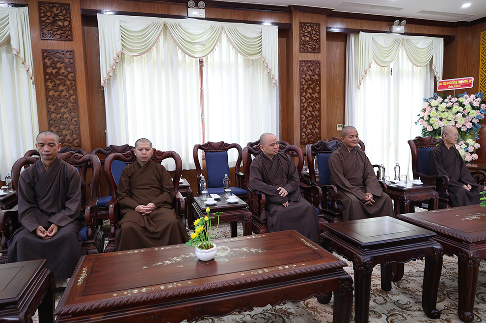 Tháp tùng chuyến đi còn có: TT. Thích Quảng Tâm – UV HĐTS, Phó Trưởng Ban Thường trực BTS GHPGVN tỉnh Long An; ĐĐ. Thích Lệ Duyên- Phó Ban Trị sự, Chánh thư ký BTS GHPGVN tỉnh; ĐĐ. Thích Lệ Ngôn- Phó Ban Trị sự, Trưởng Ban Hoằng pháp GHPGVN tỉnh; cùng Chư Tôn đức Thường trực BTS GHPGVN tỉnh Long An.