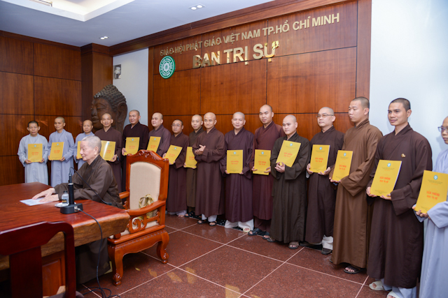 Tiếp đó, TT.Thích Quang Thạnh đã công bố quyết định chuẩn y nhân sự nhiệm kỳ 9 của Ban TTTT PG TP.HCM gồm 36 thành viên do ĐĐ.Thích Tâm Hải làm trưởng ban, ĐĐ.Thích Hải Đạt phó Ban thường trực, ĐĐ.Thích Minh Thuận phó ban kiêm chánh thư ký.
