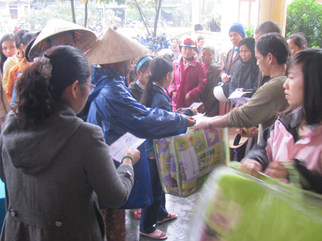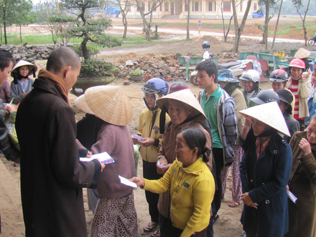 Kế đến, Phật tử Quảng Hiền cùng thầy Tâm Quang đến xã Hải Lệ, huyện Hải Lăng trao tặng 100 phần quà cho bà con khó khăn, mỗi phần gồm 1 cái chăn và 100.000đ tiền mặt. Tại đây, nhà tài trợ đã phát 100 phần quà cho đồng bào nghèo Làng An Đôn, xã Triệu Thượng, huyện Triệu Phong với niềm vui đem hạnh phúc đến mọi người.