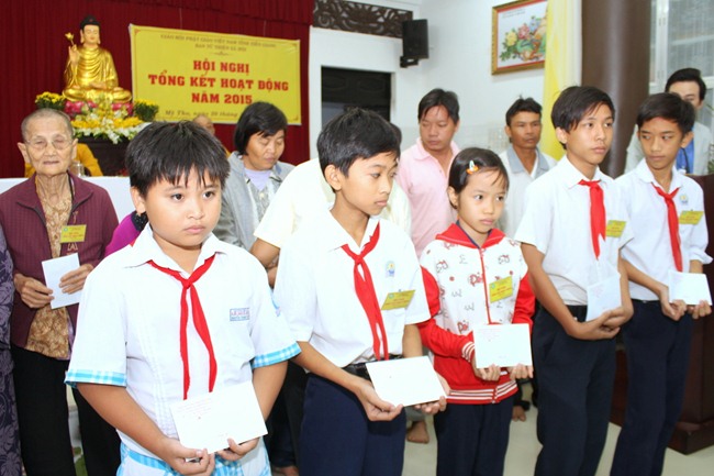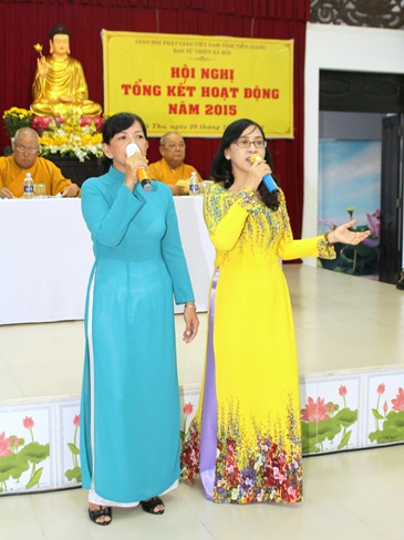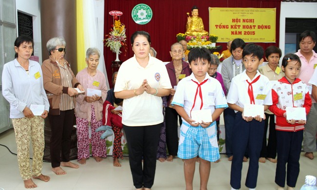 Thông qua bản báo cáo, được biết, tổng giá trị công tác từ thiện xã hội của Ban TTXH PG tỉnh Tiền Giang trong năm 2015 là:  7.163.245.000 VNĐ bao gồm các hoạt động như: Bảo trợ hàng tháng cho người già neo đơn, người khuyết tật, học sinh nghèo, cơm từ thiện tại các Bệnh viện Đa khoa tỉnh, BV. Tâm thần, BV Lao, BVĐK Chợ Gạo, BVĐK khu vực Gò Công; Chương trình “Khích lệ học sinh nghèo vượt khó học tốt”;  Chương trình “Đồng phục giúp học sinh nghèo đến trường”;