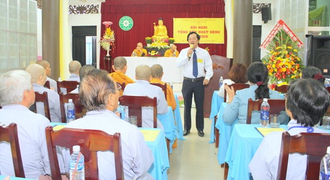 Dịp này, HT. Thích Huệ  Minh, UV HĐTS GHPGVN, Trưởng BTS GHPGVN tỉnh Tiền Giang đã ban đạo từ. Hoà thượng nhận định: Trong số 8 Ban của GHPGVN thì Ban TTXH là Ban đi vào lòng người, gắn bó với con người nhiều nhất, tức là đem tình thương của đạo Phật đến cho tất cả mọi người. Ban Từ Thiện hoạt động trong khuôn khổ mà Giáo hội cho phép và Nhà nước chấp nhận, dưới sự giúp đỡ của các Ban ngành của tỉnh, huyện, địa phương. Hoà thượng còn tán thán những thành quả về công tác từ thiện tại tỉnh, các huyện, thị xã và thành phố đạt được trong năm 2015.
