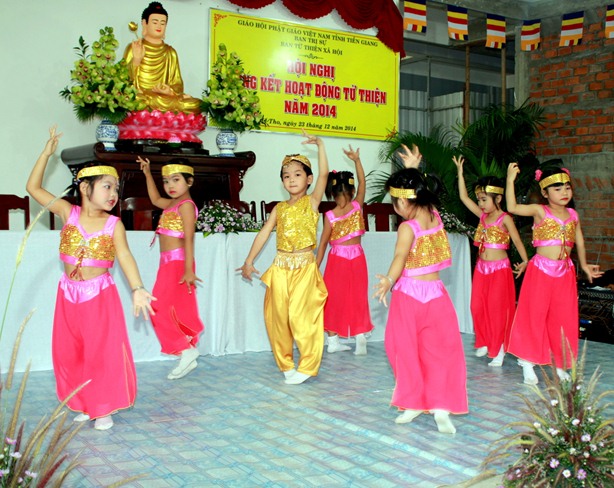 Thông qua bản báo cáo, được biết, tổng giá trị công tác từ thiện xã hội của Ban TTXH PG tỉnh Tiền Giang trong năm 2014 là: 7.053.625.000 VNĐ, bao gồm các hoạt động như :Bảo trợ hàng tháng cho người già neo đơn, người khuyết tật, học sinh nghèo, cơm từ thiện tại các Bệnh viện Đa khoa tỉnh, BV. Tâm thần, BV Lao, BVĐK Chợ Gạo, BVĐK khu vực Gò Công; Chương trình “Khích lệ học sinh nghèo vượt khó học tốt”;Chương trình “Đồng phục giúp học sinh nghèo đến trường”; Chương trình “Học bổng vì tương lai”; Hoạt động trường mầm non Tịnh Nghiêmnuôi dạy gần 250 cháu; Chương trình “Vui Hội Trăng Rằm”, tặng 10.000 phần quà; Chương trình tặng nhà tình thương; Tổ chức bếp ăn từ thiện; Tặng 3.717 phần quà cho bà con nghèo, người khuyết tật, người mù, trẻ em nghèo vào các dịp Lễ lớn của PG và tết nguyên đán; Chương trình “Đem lại ánh sáng cho người mù nghèo”; Chương trình tặng 13 xe lắc và 6 xe lăn cho người khuyết tật; Chương trình khám bệnh và phát thuốc miễn phí cho 2.000 lượt bệnh nhân nghèo tại vùng sâu, vùng xa, v.v…
