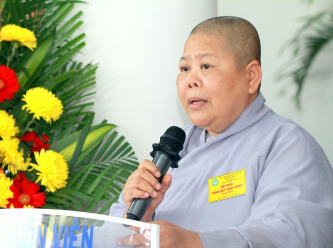 Theo ông, Ni sư không chỉ là một nhà sư chăm lo về đạo pháp, đúng hiến chương hành đạo của GHPGVN mà cònthể hiện bằng cả tấm lòng chăm lo cho người nghèo mang tính đa dạng, phong phú.Ông đánh giá những nghĩa cử cao đẹp của Ni sư đã thật sự san sẻ phần nào khó khăn cùng Đảng, Chính quyền, Mặt trận trong việc chăm lo cuộc sống cho người nghèo và thế hệ mầm non. Sau cùng, ông bày tỏ niềm tin tưởng đối với Ban TTXH PG tỉnh Tiền Giang và kêu gọi đồng bào phật tử tiếp tục phát huy tinh thần: Đạo pháp – Dân tộc – XHCN, tham gia phát triển kinh tế, làm tốt công tác từ thiện xã hội trong thời gian tới.
