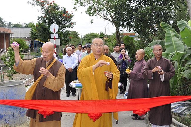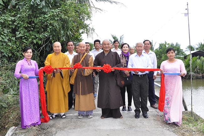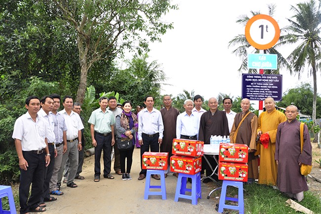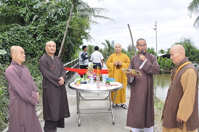 Dù công trình thi công chưa hoàn thành còn đang trong giai đoạn lắp lan can thành cầu, nhưng để thuận tiện việc ĐĐ. Thích Tịnh Nhẫn làm lễ bàn giao cầu và trở về Hoa Kỳ nên BTS GHPGVN tỉnh Long An và chính quyền địa phương sở tại đã tổ chức buổi lễ.