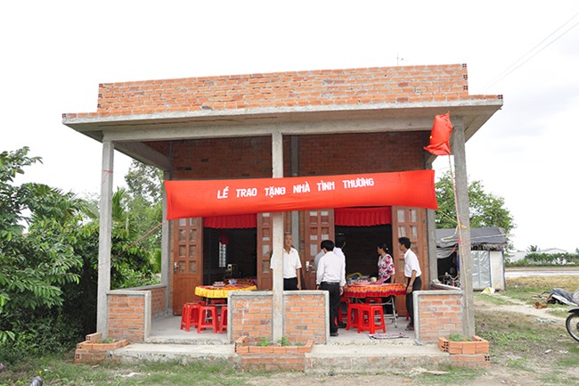Đến 9 giờ 30 cùng ngày, phái đoàn Từ thiện cũng đã đến nhà bà Châu Thị Hồng ấp 6 xã Tân Phước Tây, huyện Tân Trụ, tỉnh Long An để bàn giao căn nhà tình thương cho gia đình.