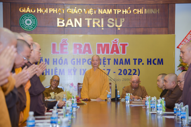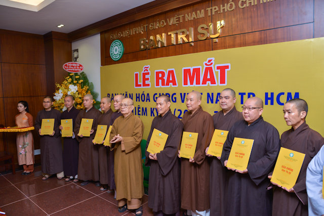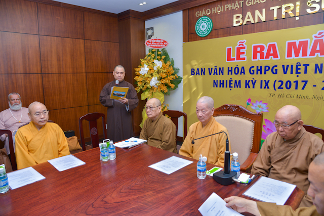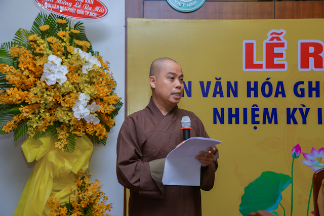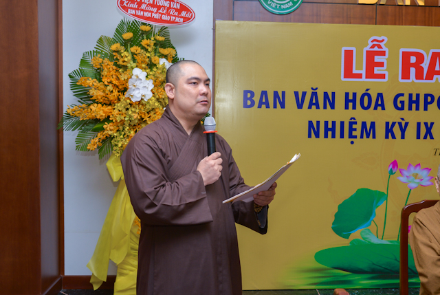 TT.Thích Quang Thạnh – Phó thư ký kiêm Chánh văn phòng BTS GHPGVN TP.HCM đại diện Ban Thường trực Ban Trị sự GHPGVN TP.HCM công bố quyết định thành phần nhân sự Ban Văn Hóa BTS GHPGVN TP.HCM nhiệm kỳ IX, gồm 50 thành viên, do TT.Thích Trí Chơn làm Trưởng ban.