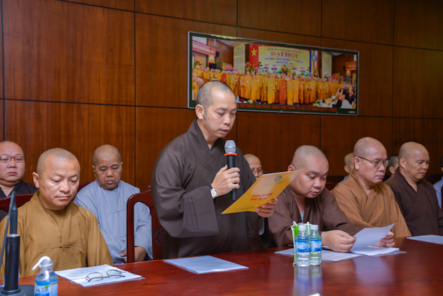 Theo đó, Đại Đức Thích Chí Giác Thông – Phó Ban kiêm Chánh thư ký Ban văn hóa GHPGVN TP.HCM đại diện Ban Thường trực Ban Văn Hóa GHPGVN TP.HCM trình bày phương hướng hoạt động Ban Văn Hóa GHPGVN TP.HCM nhiệm kỳ IX (2017 – 2022).