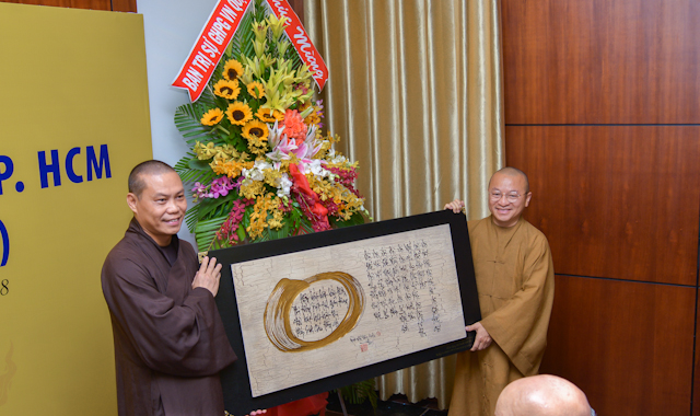 Trong buổi lễ này, Ban thường trực Ban văn hóa GHPGVN TP.HCM nhiệm kỳ IX cũng đã tặng hoa tri ân đến những đóng góp Phật sự của chư tôn đức lãnh đạo Ban Văn Hóa ở các nhiệm kỳ trước.