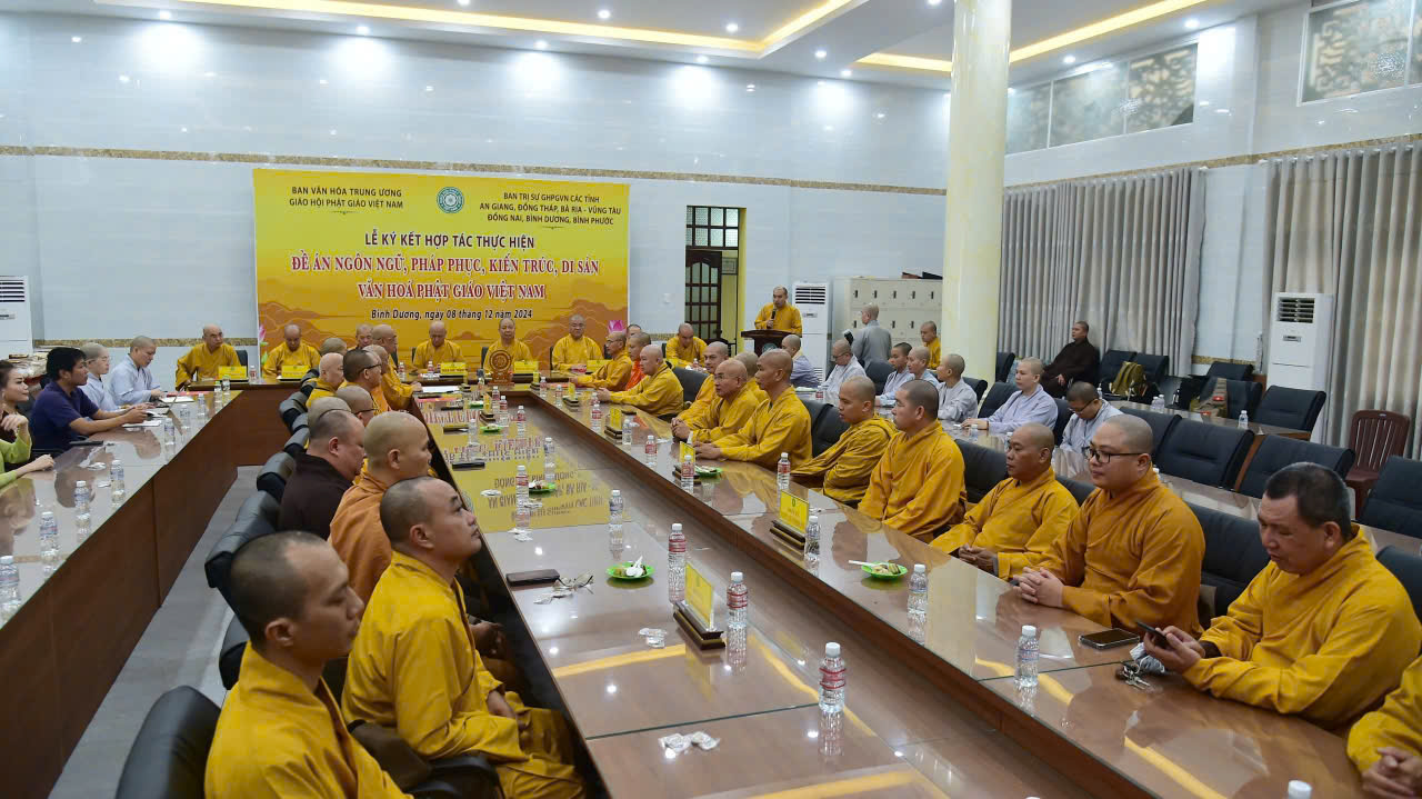 Tham dự lễ ký kết có: Hòa thượng Thích Huệ Thông – Phó Chủ tịch HĐTS, Trưởng ban Pháp chế Trung ương, Trưởng ban Trị sự GHPGVN tỉnh Bình Dương; Hòa thượng Thích Thọ Lạc – Ủy viên Thường trực HĐTS, Trưởng ban Văn hóa Trung ương GHPGVN, chủ trì buổi lễ; Hòa thượng Thích Thiện Duyên – Ủy viên HĐTS, Phó ban Thường trực Ban Trị sự GHPGVN tỉnh Bình Dương; Thượng tọa Thích Tĩnh Cường – Ủy viên HĐTS, Phó Trưởng ban Thường trực Ban Trị sự GHPGVN tỉnh Bình Phước; Thượng tọa Thích Minh Tiến và Thượng tọa Thích Giác Nghi – đồng Ủy viên HĐTS, Phó Trưởng ban Văn hóa Trung ương; Thượng tọa Thích Tĩnh Triệt – Ủy viên HĐTS, Trưởng ban Trị sự GHPGVN tỉnh Đồng Tháp; Thượng tọa Thích Nhuận Nghĩa – Ủy viên HĐTS, Phó Trưởng ban Thường trực Ban Trị sự GHPGVN tỉnh Bà Rịa – Vũng Tàu; Thượng tọa Thích Lệ Trí – Ủy viên HĐTS, Phó Trưởng ban Văn hóa Trung ương; Thượng tọa Thích Đạo Huy – Phó Trưởng ban kiêm Chánh Thư ký Ban Trị sự GHPGVN tỉnh Đồng Nai; Thượng tọa Thích Bửu Ngọc – Phó Chánh Thư ký Ban Trị sự, Trưởng ban Văn hóa GHPGVN tỉnh An Giang; Thượng tọa Thích Quảng Minh – Phó Thư ký kiêm Chánh Văn phòng Ban Văn hóa Trung ương; Thượng tọa Thích Chơn Trí – Phó ban Trị sự, Trưởng ban Từ thiện Xã hội GHPGVN tỉnh Đồng Tháp; Đại đức Thích Phước Huệ – Phó Chánh Văn phòng Ban Văn hóa Trung ương, Phó ban Trị sự, Trưởng ban Văn hóa GHPGVN tỉnh Đồng Tháp, cùng chư Tôn đức Thường trực Ban Văn hóa Trung ương và lãnh đạo Ban Trị sự, Ban Văn hóa các tỉnh Bình Dương, Bình Phước, Đồng Nai, Bà Rịa – Vũng Tàu, Đồng Tháp và An Giang.