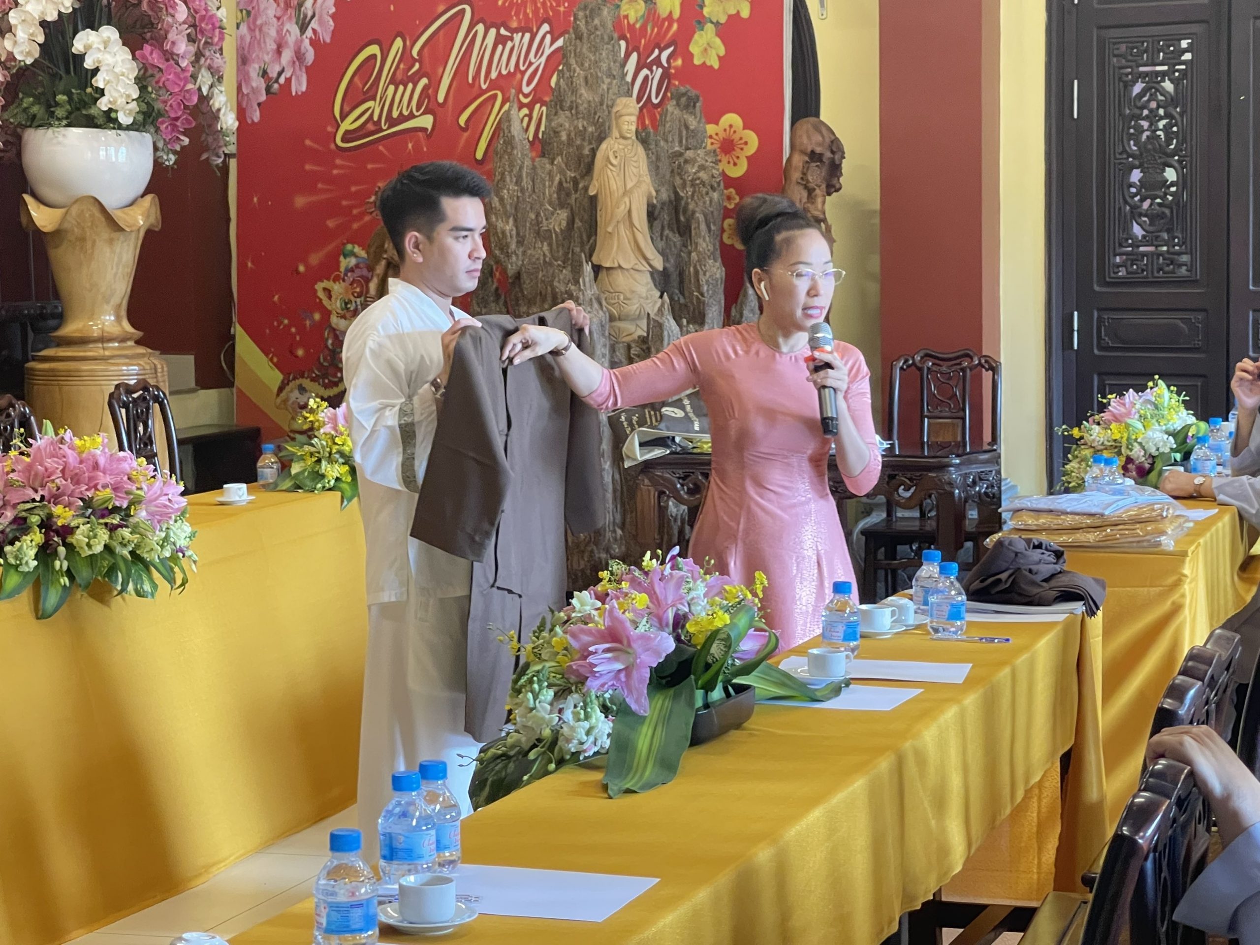 Tại buổi tập huấn, đại diện Phân ban Pháp phục Phật giáo giới thiệu các mẫu Pháp phục phổ biến trong đời sống thiền môn, hành lễ, xuất hành của Tăng Ni Phật tử.