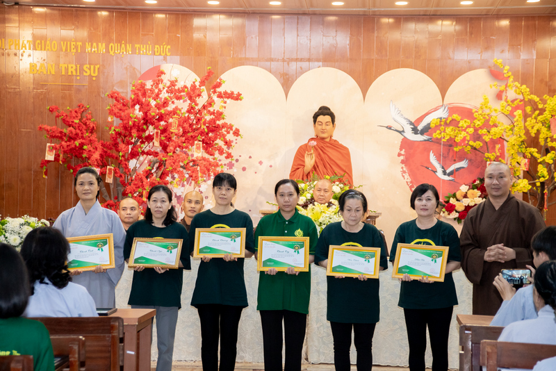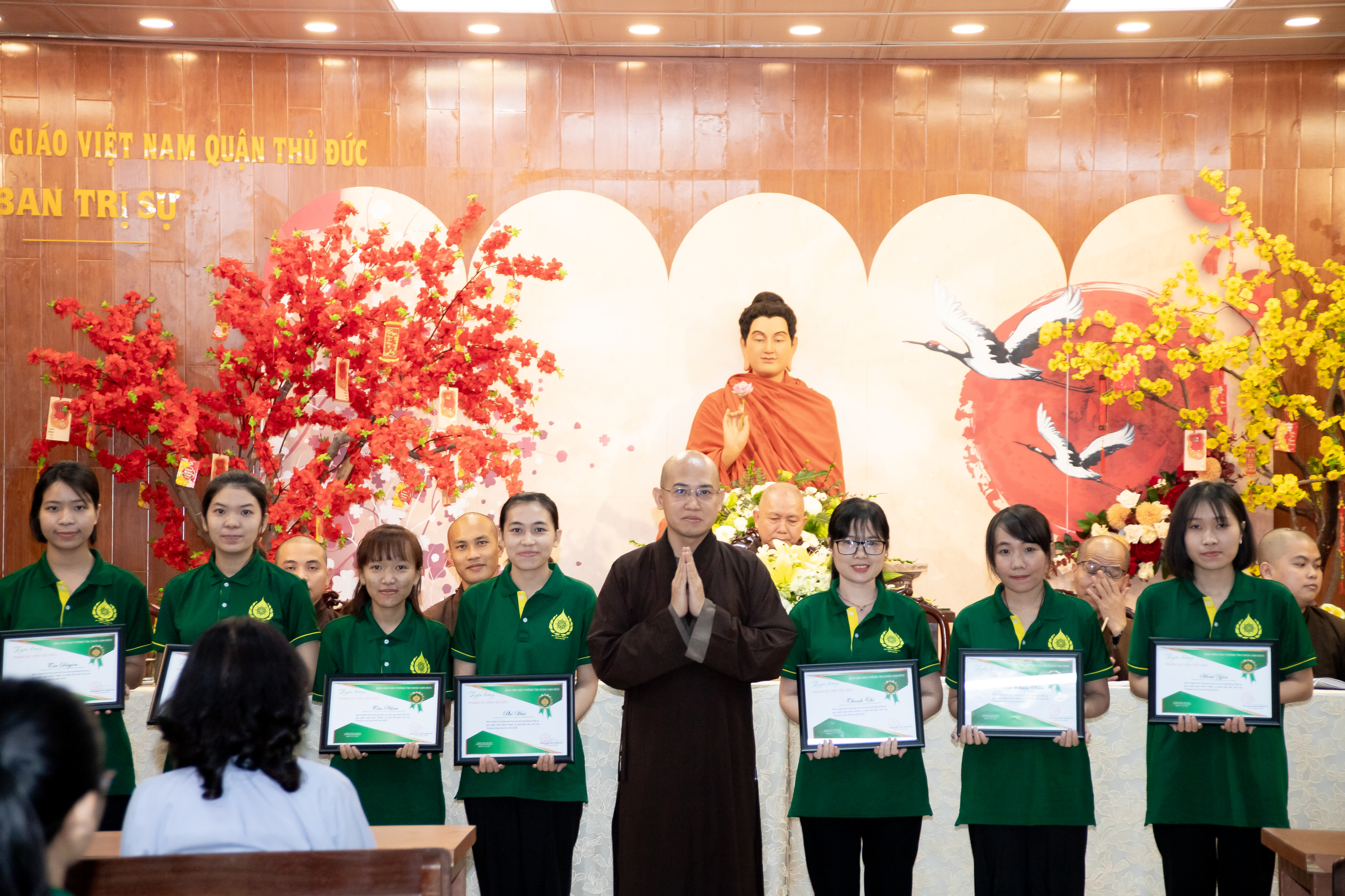 Dịp này, BVHTT.CVĐ đã dâng quà cúng dường tri ân Hoà thượng Trụ trì và chư tôn đức trong Ban Điều hành cũng như khen thường các thành viên tiêu biểu đã tích cực trong mọi công tác phụng sự.