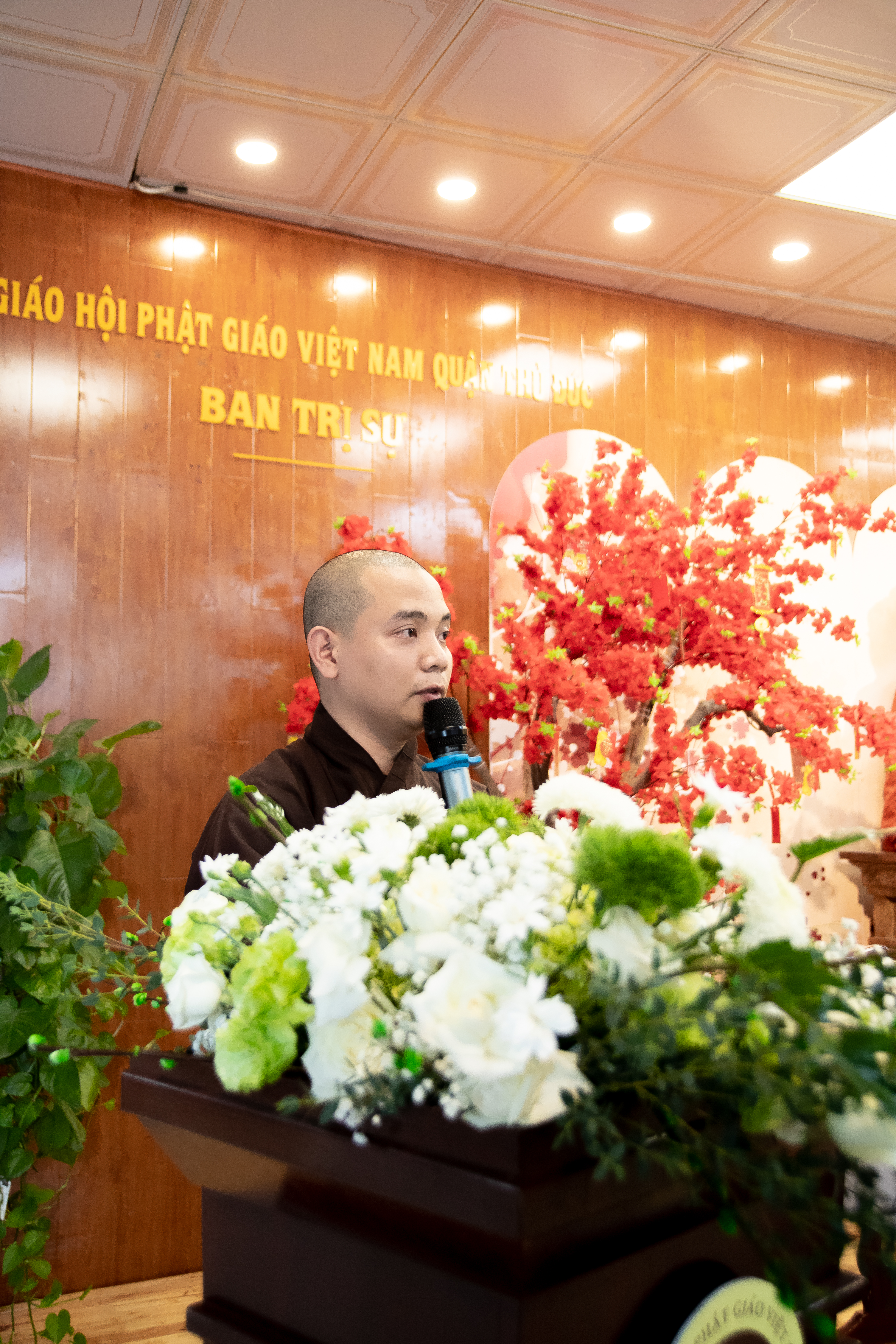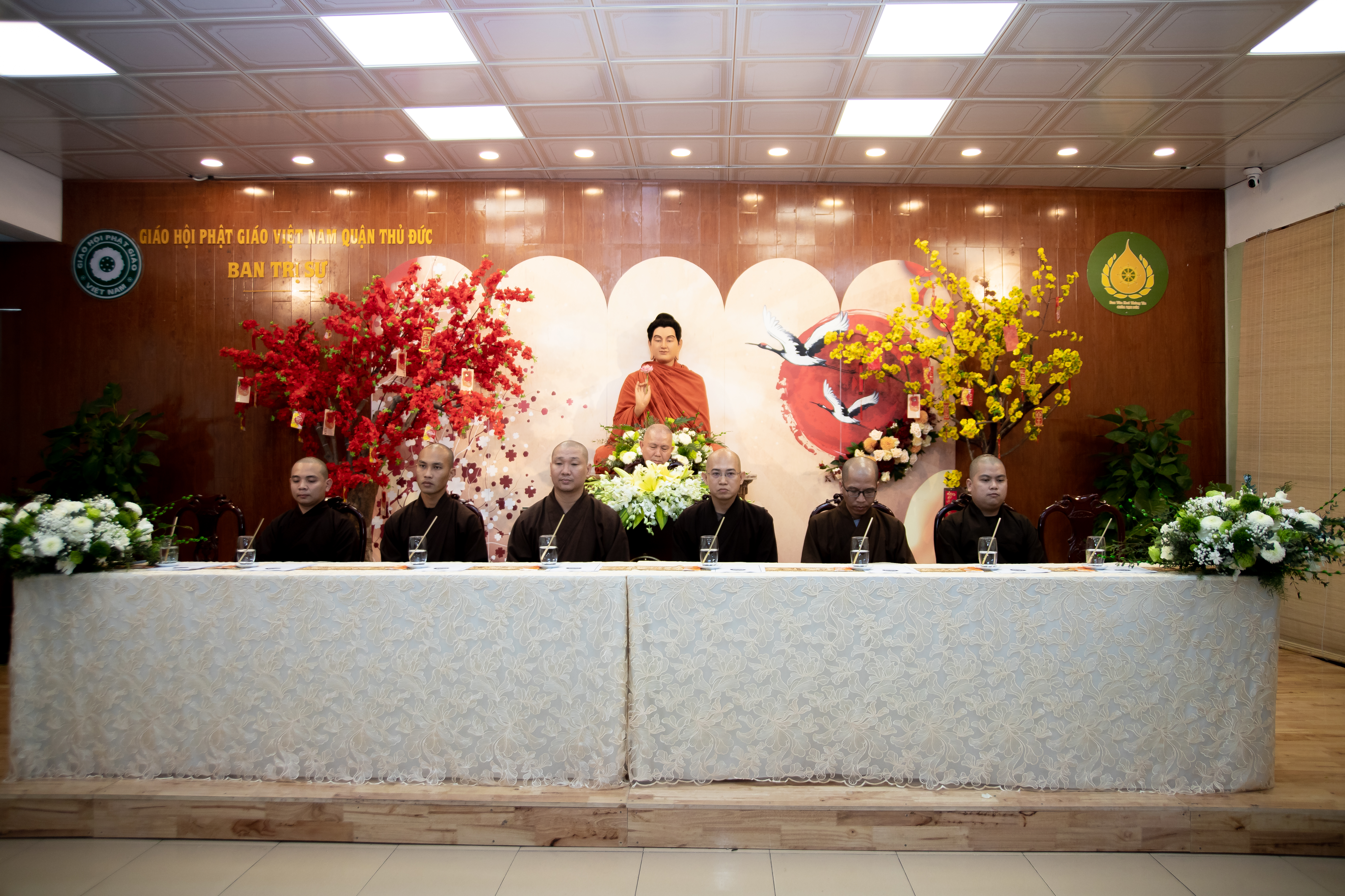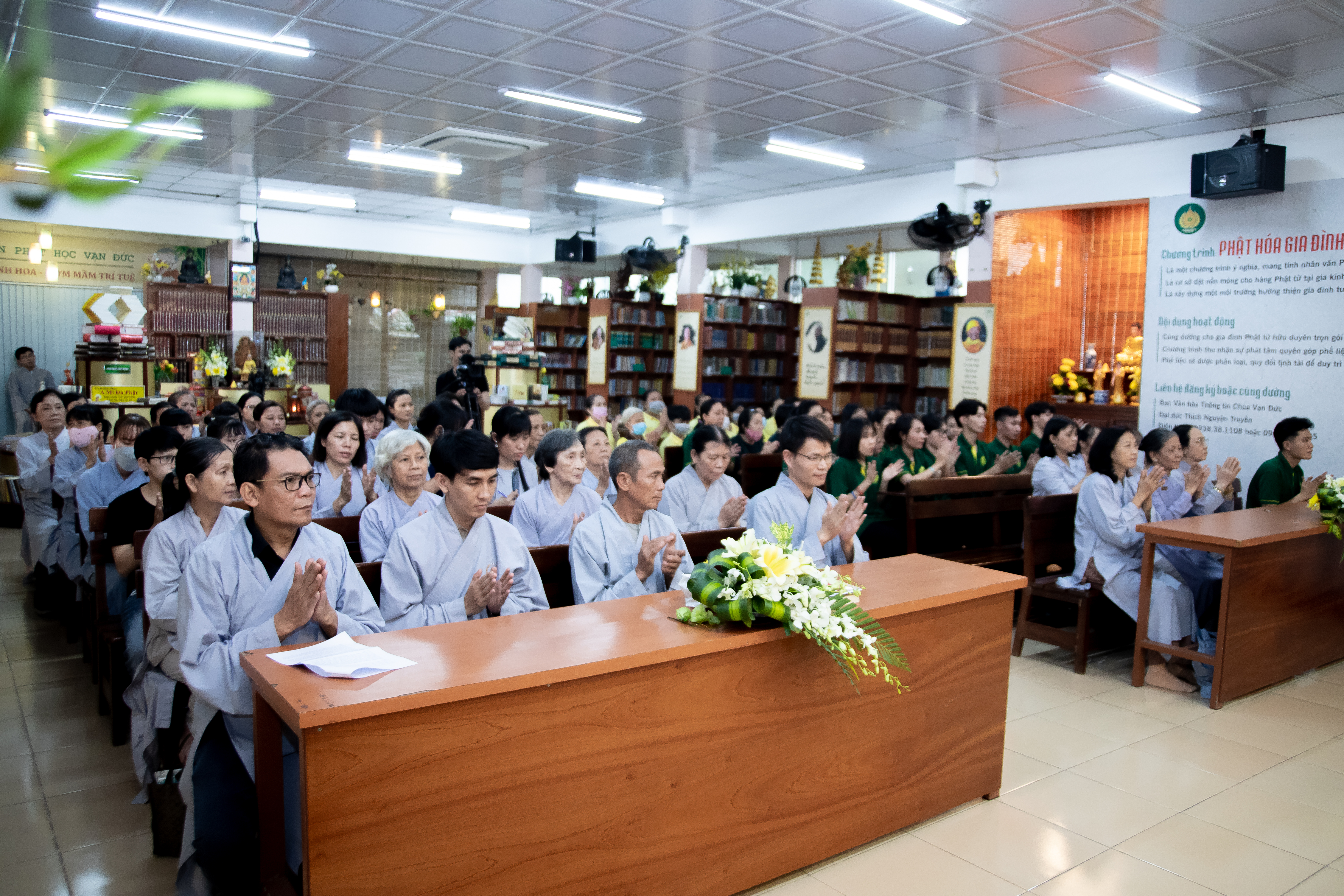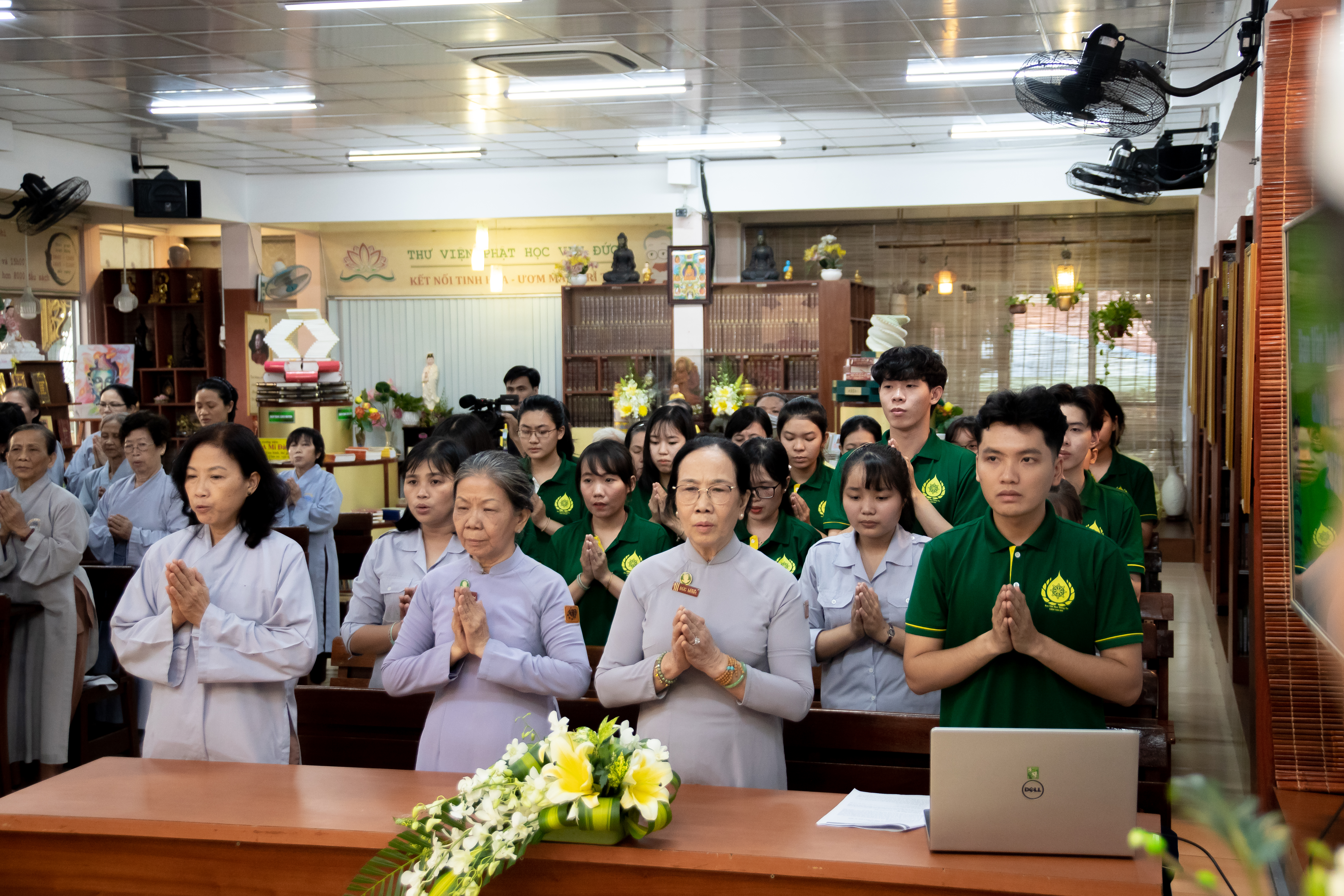 Đến chứng minh và tham dự có Hòa thượng Thích Hoằng Tri, Trụ trì chùa Vạn Đức; ĐĐ. Thích Hoằng Thường, Ủy viên Ban Thông tin Truyền thông Trung ương, Trưởng Ban Văn hóa Thông tin chùa Vạn Đức; Đại đức Thích Minh Thuận, Giảng viên Học viện Phật giáo Việt Nam tại TP.HCM và chư tôn đức trong Ban cùng các bạn trẻ thành viên, quý học viên lớp giáo lý trở về tham dự.