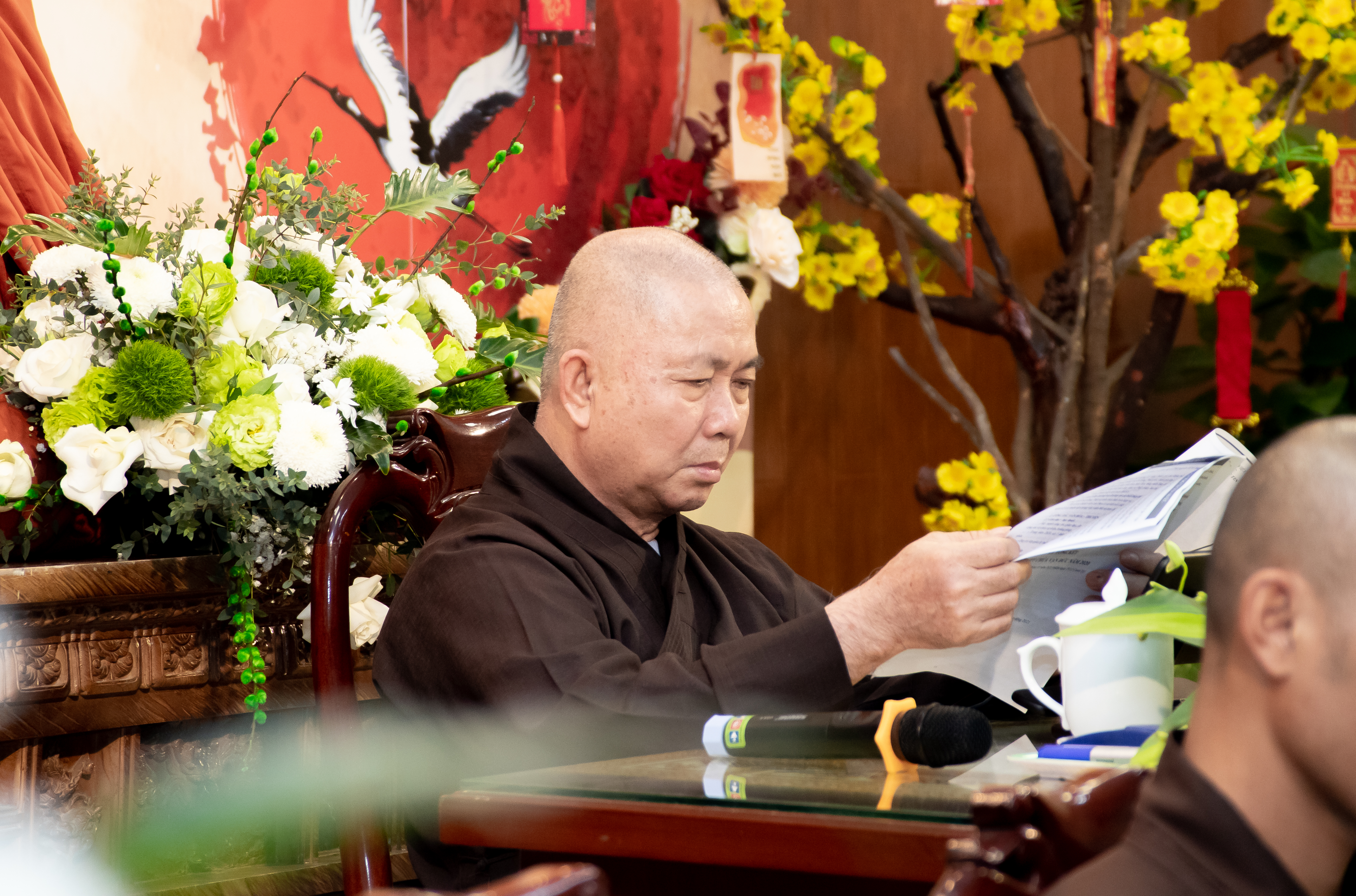 Hòa thượng Thích Hoằng Tri có lời hoan hỷ đối với những thành tựu mà BVHTT.CVĐ đã gặt hái, đồng thời Hòa thượng cũng có lời nhắc nhở không chỉ đến lễ tổng kết chúng ta mới nhìn lại, mà mỗi ngày mỗi người con Phật phải luôn nhìn lại và soi sáng chính mình, để hiện tại tự thân được lợi ích và tương lai được an vui. Qua đó, Hò thượng khuyến tấn các thành viên cố gắng nương theo lời dạy của Cố Hoà thượng Viện chủ để đạt được những thành quả trong chặng đường phía trước.