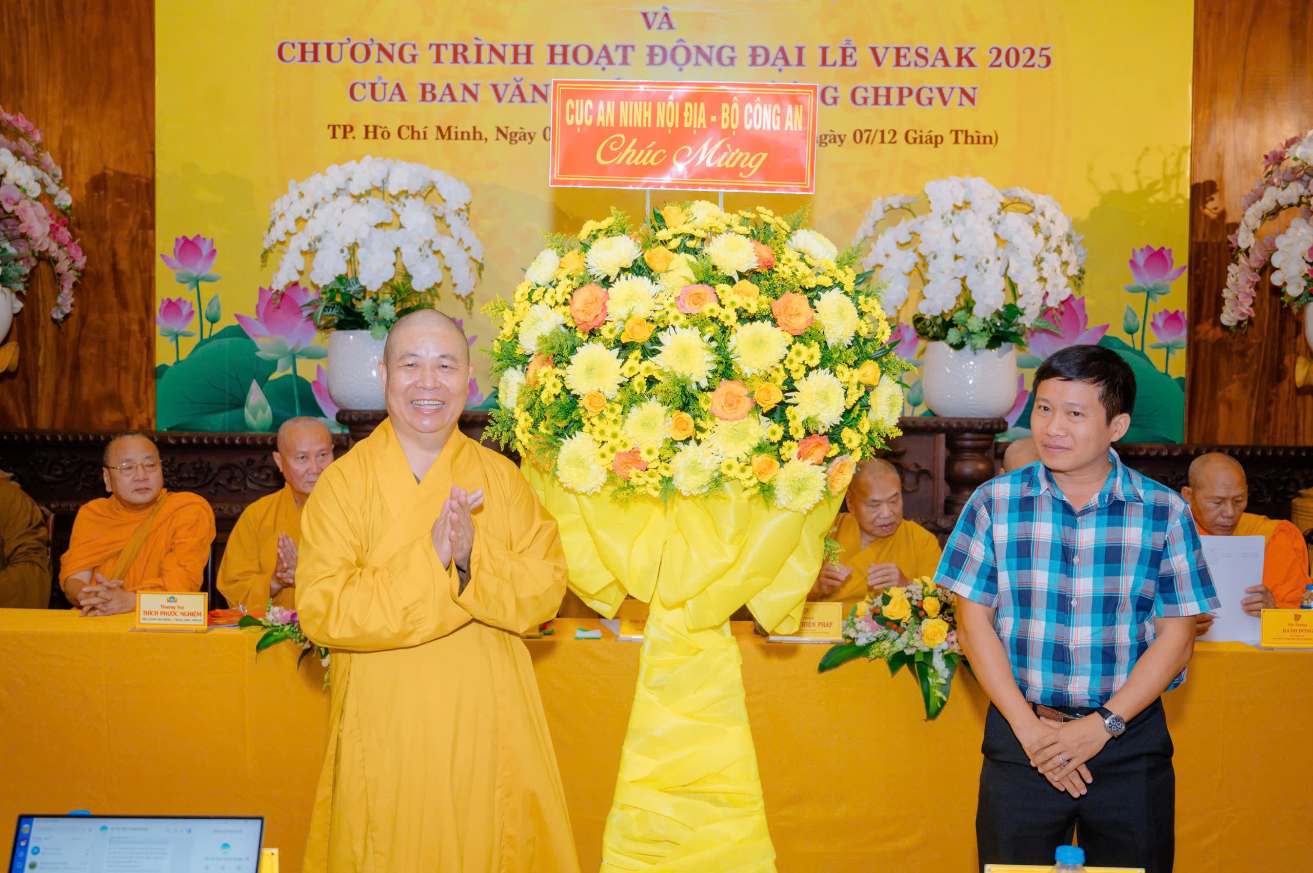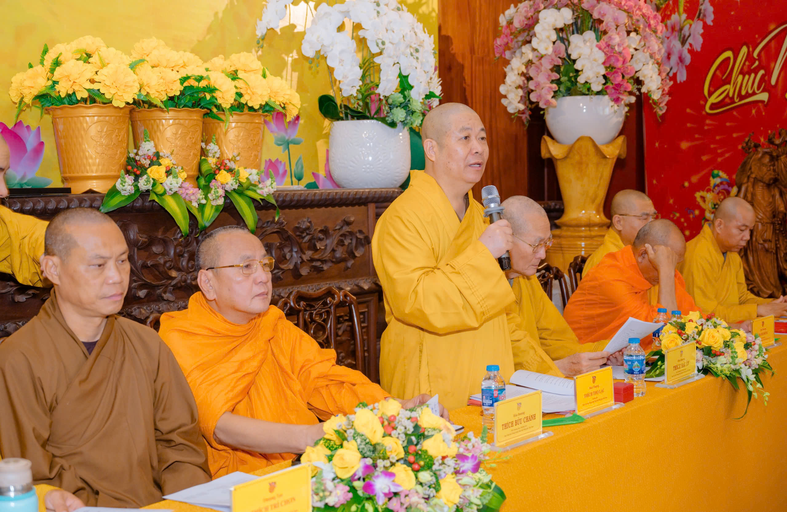 Theo đó, Hoà thượng cũng điểm lại đôi nét về quá trình hoạt động trong năm 2024, và hy vọng những kết quả tuyệt vời đó là nền tảng, động lực để mọi người cùng nhau hoàn thành các nhiệm vụ tiếp theo mà Giáo hội đã giao phó, góp phần bảo vệ bản sắc văn hóa dân tộc, xây dựng và phát huy mô hình văn hóa Phật giáo trong lòng dân tộc và bạn bè thế giới trong thời đại phát triển ngày nay.
