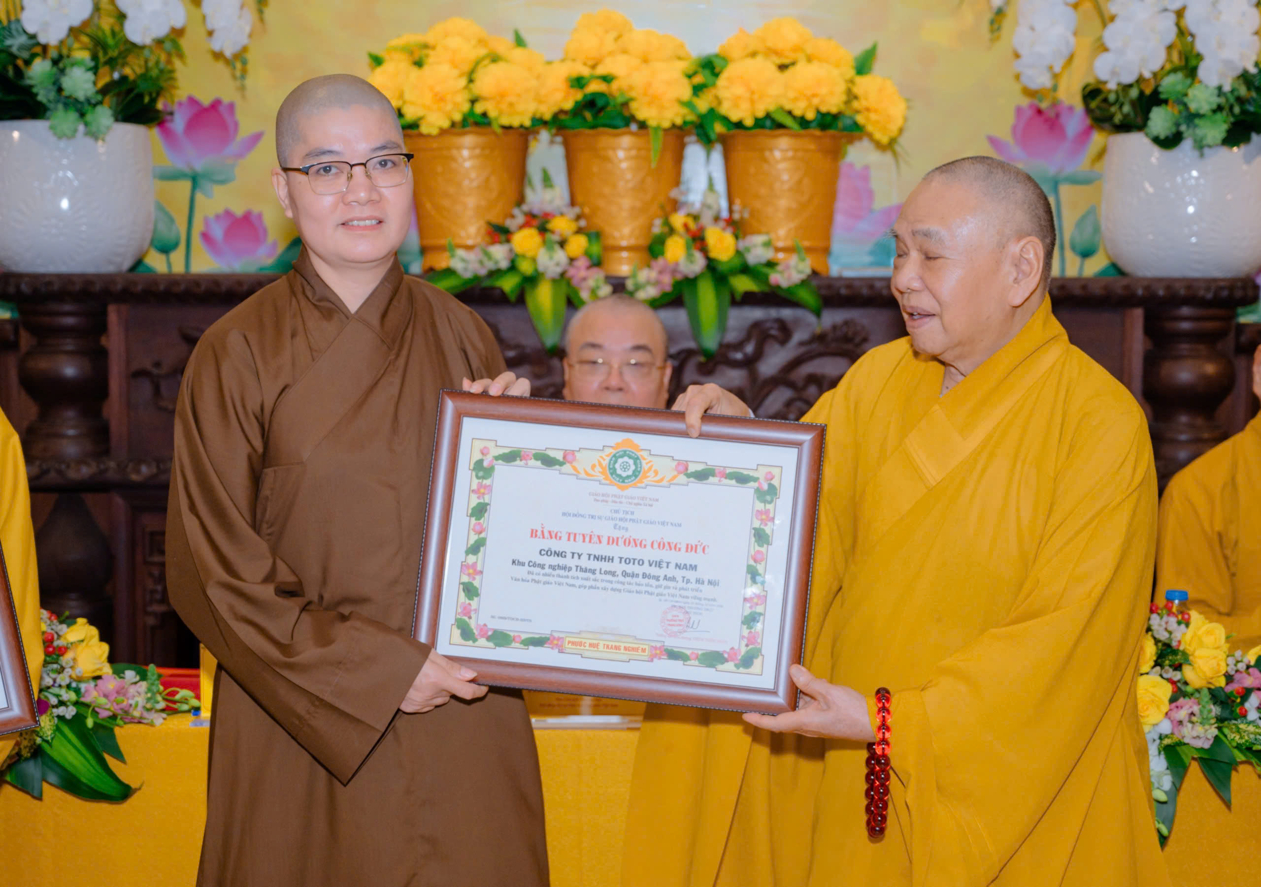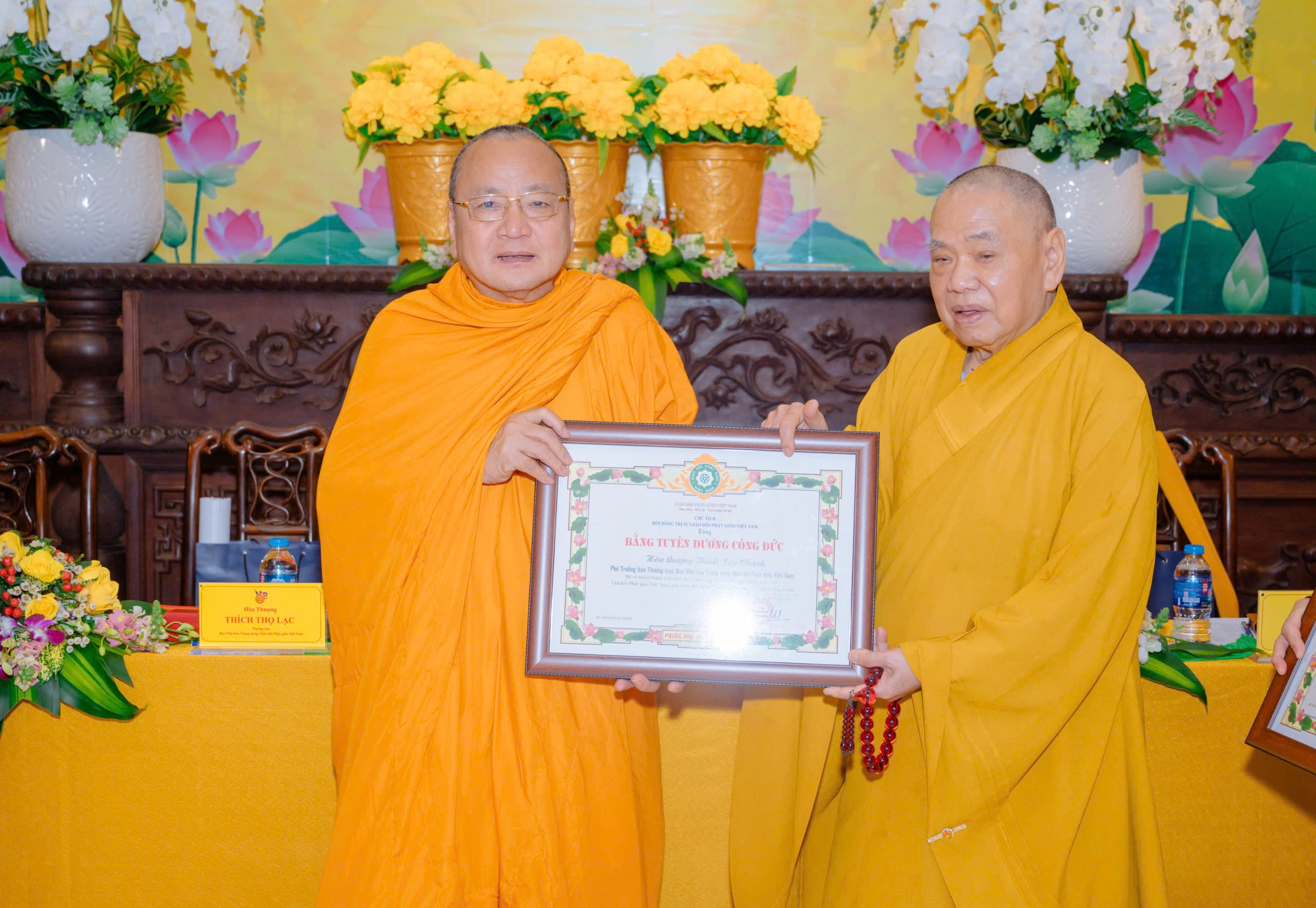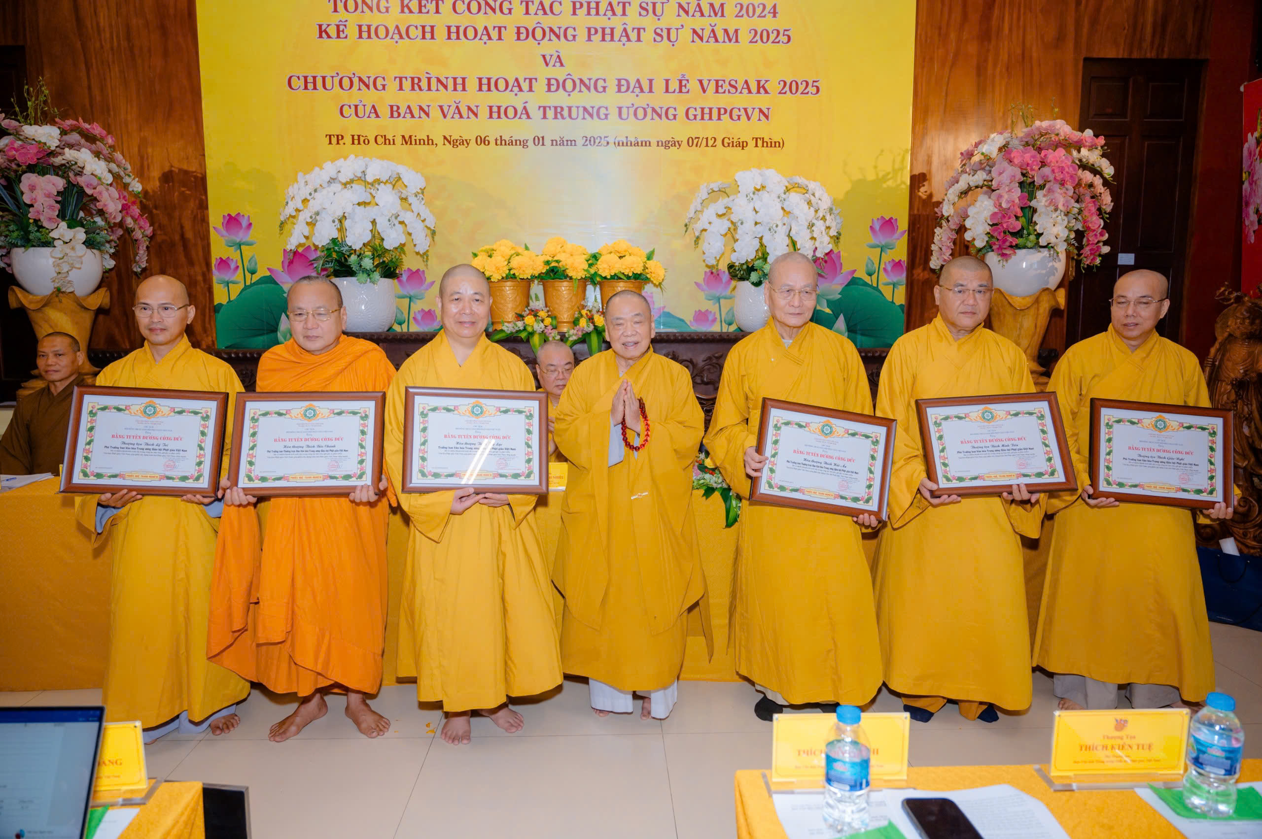 Với những thành tự đã đạt được trong năm 2024, Hội đồng Trị sự GHPGVN đã trao bằng Tuyên dương công đức đối với những cá nhân tập thể đã hoàn thành các công tác Phật sự đã đề ra.