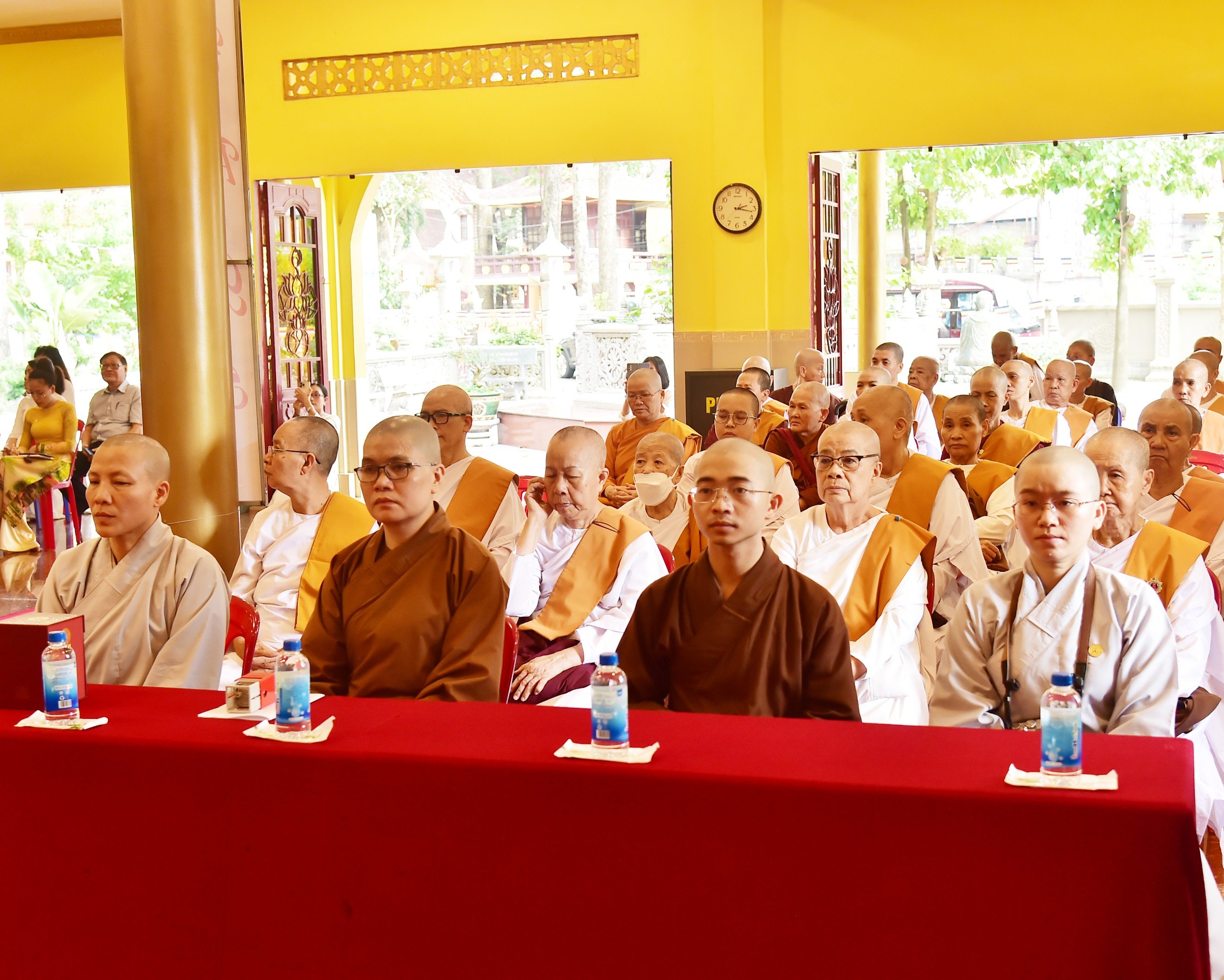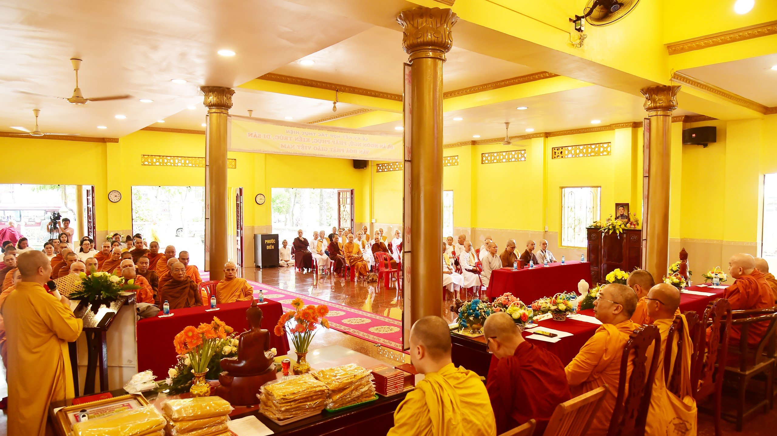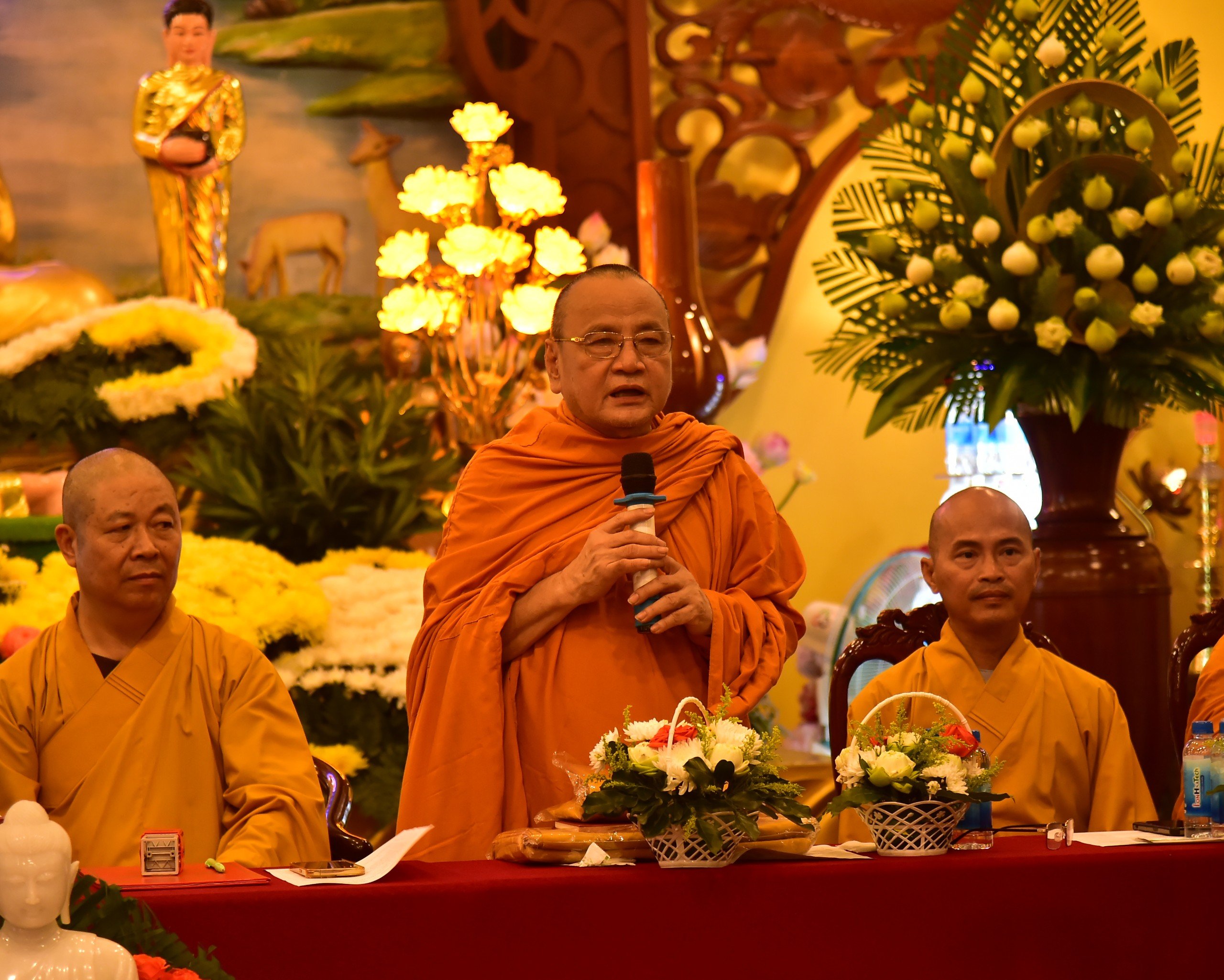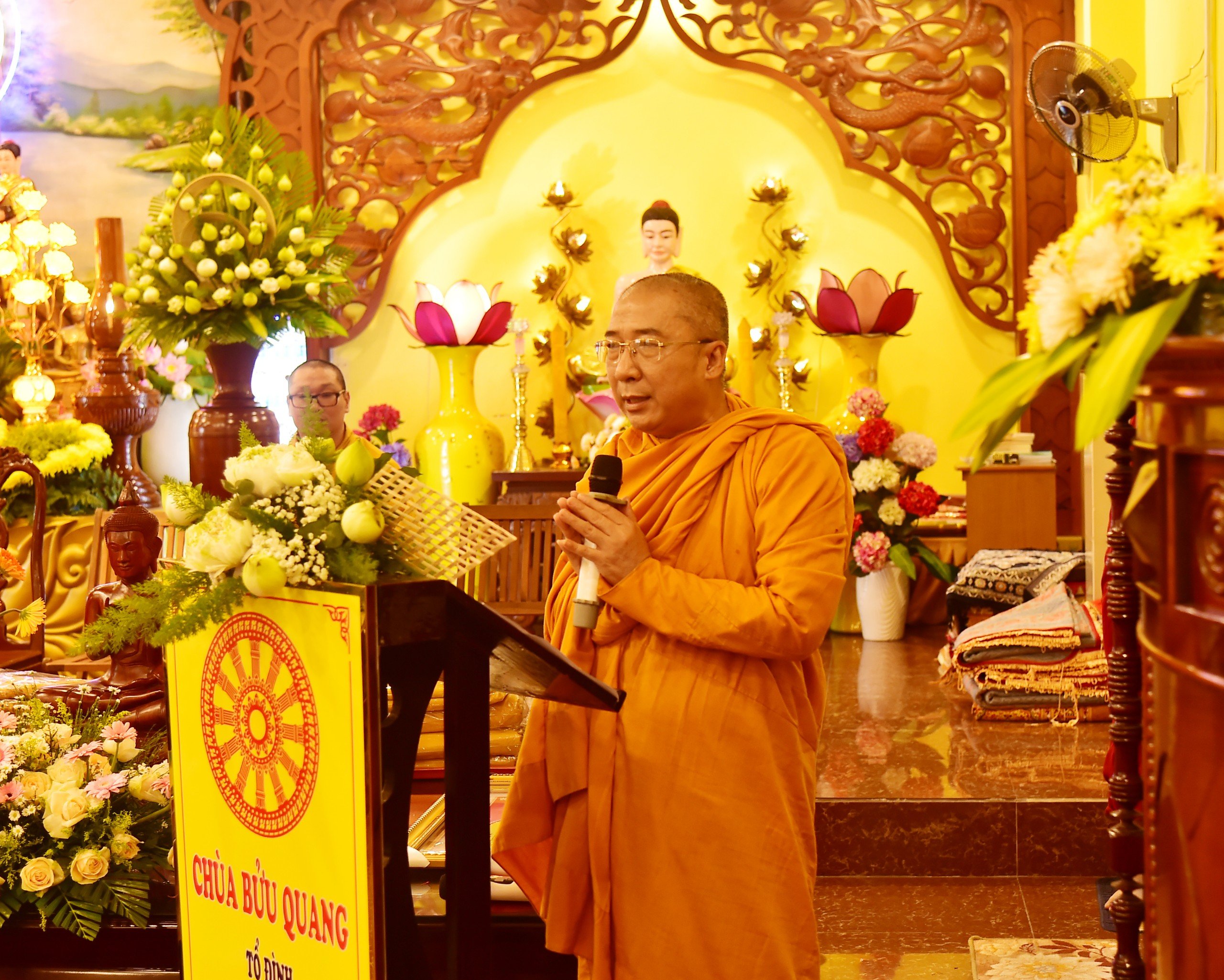 Thượng tọa Thích Thiện Hạnh trình bày tổng quan về việc trung tu chánh điện chùa Bửu Quang, và tán thành quan điểm thống nhất trong đa dạng về kiến trúc văn hóa Phật giáo.