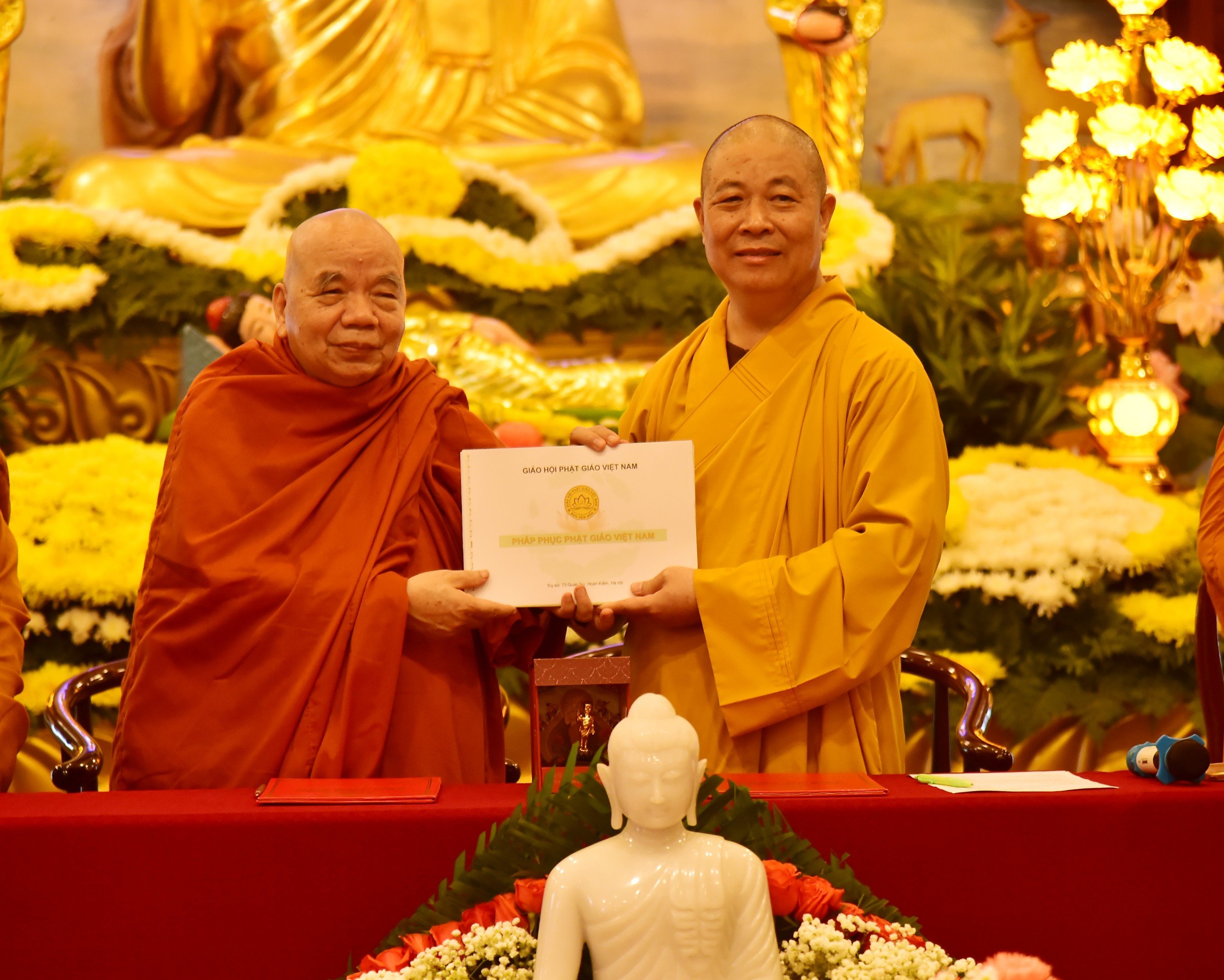 Kết thúc buổi lễ, Hòa thượng Thích Thọ Lạc- Trưởng Ban Văn hóa T.Ư và Hòa thượng Thích Thiện Tâm- Phó Chủ tịch HĐTS, Trưởng Phân ban Tăng sự Phật giáo Nam tông kinh T.Ư đã ký kết văn bản hợp tác trong tinh thần hoan hỷ và đồng thuận cao.
