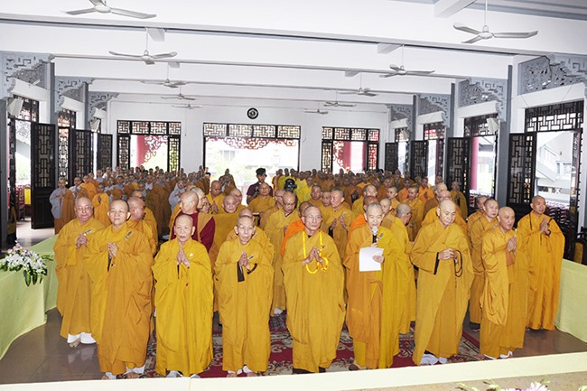 Trong không khí trang nghiêm, đại diện cho các ban, viện T.Ư, HT.Thích Thanh Hùng, UVTT HĐTS, Trưởng ban HDPT T.Ư dâng lời tác bạch, thể hiện sự hoan hỷ khi Đại hội nhiệm kỳ VIII (2017-2022) của Giáo hội diễn ra thành công, thông qua nhiều nội dung quan trọng để phát triển đạo pháp trong tình hình mới.