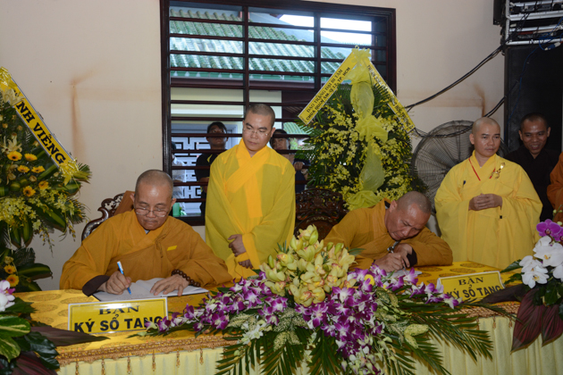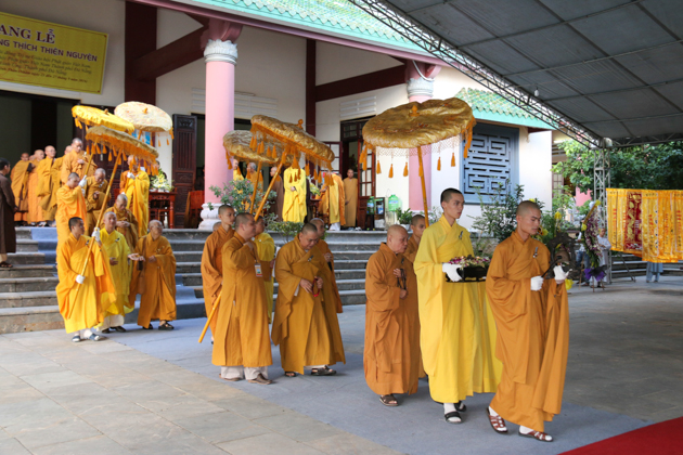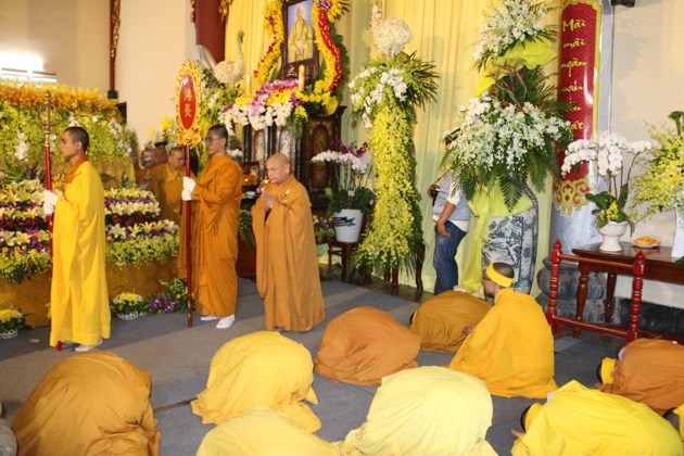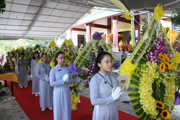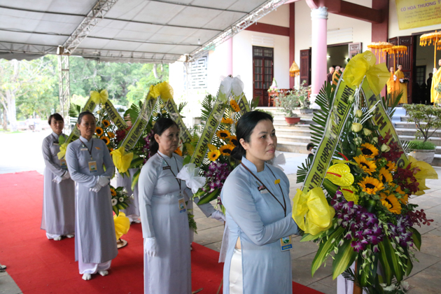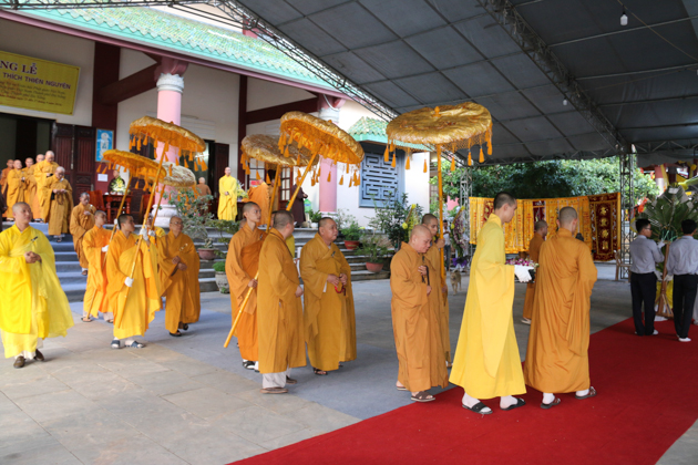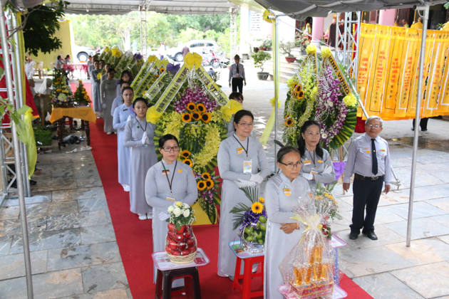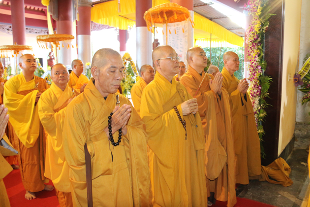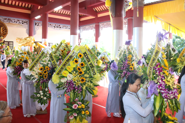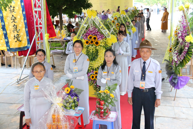 Dẫn đầu các phái đoàn là HT. Thích Thiện Pháp – Phó chủ tịch HĐTS, Trưởng ban Tăng sự TƯ; HT. Thích Giác Toàn – Phó chủ tịch HĐTS, Phó trưởng ban TT Ban GDTN TƯ GHPGVN; HT. Thích Bảo Nghiêm – Phó Chủ tịch HĐTS, Trưởng ban Hoằng pháp TƯ GHPGVN; HT. Thích Thiện Tánh – Phó chủ tịch HĐTS, Trưởng ban kiểm soát TƯ, Phó trưởng ban TT BTS GHPGVN Tp Hồ Chí Minh; HT. Thích Thiện Đức – UVTT HĐTS, Phó trưởng ban kiểm soát TƯ, Phó Trưởng BTS GHPGVN Tp Hồ Chí Minh; TT. Thích Thiện Thống – Phó tổng thư ký, Chánh văn phòng 2 TƯ GH, Phó Trưởng ban TT BTS GHPGVN tỉnh An Giang; TT. Thích Huệ Thông – UV Thư ký HĐTS, Phó văn phòng 2 TƯ GH, Trưởng BTS GHPGVN tỉnh Bình Dương; HT. Thích Tấn Đạt – UVTT HĐTS, Phó văn phòng 2 TƯ GH, Phó trưởng ban TT Ban hoằng pháp TƯ GHPGVN; HT. Thích Giác Liêm – UV HĐTS, Phó văn phòng 2 TƯ GH, Phó ban kiêm Chánh Thư ký Ban Nghi lễ TƯ GHPGVN; HT. Thích Minh Thiện – UV HĐTS, Phó trưởng ban Hoằng pháp TƯ, Trưởng BTS GHPGVN tỉnh Long An; TT. Thích Giác Trí – UV HĐTS, Phó trưởng ban Hoằng pháp TƯ GHPGVN; TT. Thích Phước Nghiêm – UV HĐTS, Phó trưởng ban HDPT TƯ; TT. Thích Phước Nguyên – UVTT HĐTS, Phó trưởng ban Kinh tế tài chính TƯ cùng Chư Tôn đức tháp tùng phái đoàn.