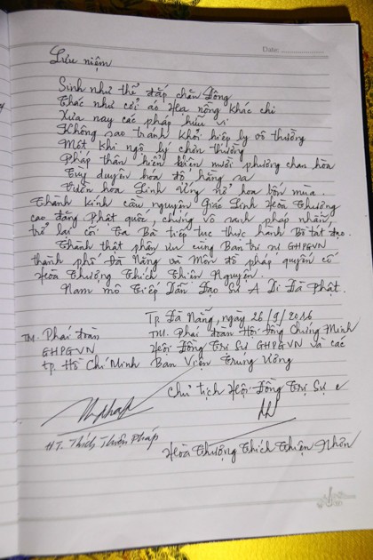 Sau lễ dâng hương, chia buồn cùng BTS GHPGVN Tp Đà Nẵng và môn đồ pháp quyến, thọ tang và nhiễu kim quan, Chư Tôn đức đã ghi vào sổ tang tỏ lòng kính tiếc trước sự mất mát của Phật giáo đồ Đà Nẵng.