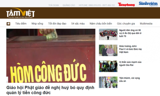 “Chuyên trang Tâm Việt cũng là tiếng nói đấu tranh với các biểu hiện lệch lạc, lợi dụng tín ngưỡng, tôn giáo gây ảnh hưởng xấu đến trật tự an toàn xã hội và đời sống nhân dân; góp phần đưa thông tin, hình ảnh về Việt Nam và dân tộc Việt Nam đến cộng đồng thế giới…”