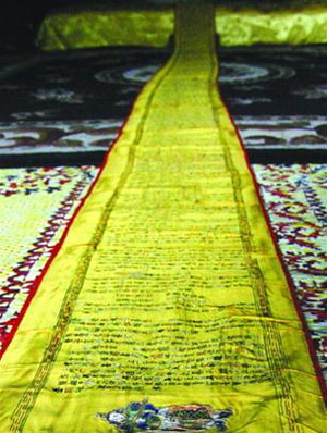 Bộ kinh Kim Cang được thêu trên nền gấm lót nhiễu điều lớn nhất Việt Nam