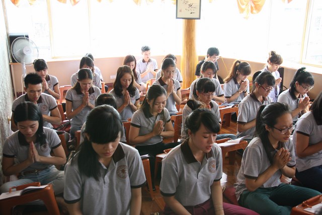 Trước khi khởi hành gieo duyên Phật sự, toàn thể thành viên trong đoàn từ thiện đã cùng nhau tham gia nghi thức tĩnh tọa, tụng kinh, niệm Phật mong cầu sự bình an và sức khỏe thiện lành dành cho các bệnh nhi.