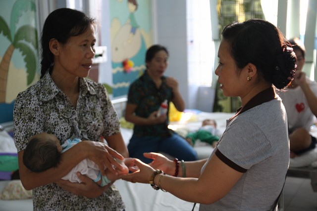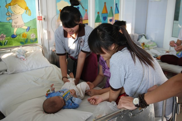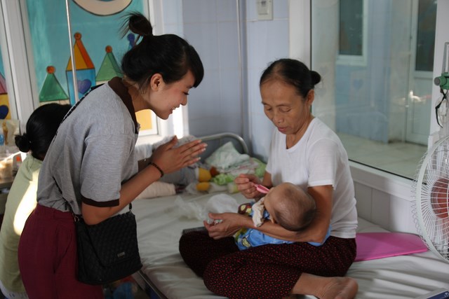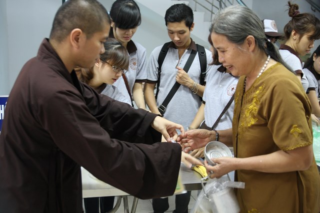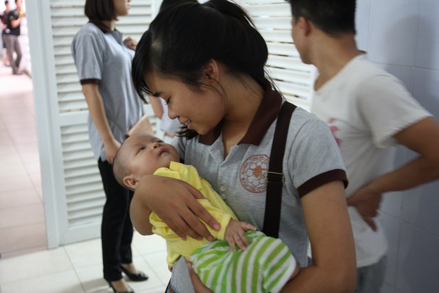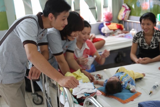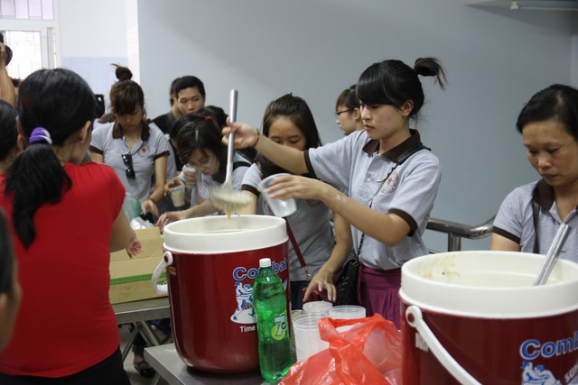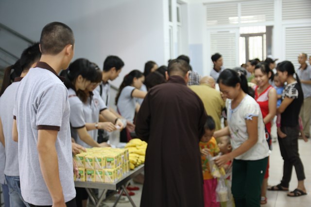 Các thiện nguyện viên bắt đầu phát cháo từ thiện tại Khoa Tim mạch Trẻ em – Bệnh viện E Hà Nội. Nhìn các em tuổi đời còn quá nhỏ nhưng đã sớm phải đối diện với bệnh tình hiểm nghèo, những người Phật tử chúng tôi đều không khỏi xót xa, thương cảm. Những phần quà tình nghĩa trao đến các em, mong sao có thể làm vơi đi phần nào nỗi đau thể chất, tinh thần mà các bé đang phải chịu đựng.
