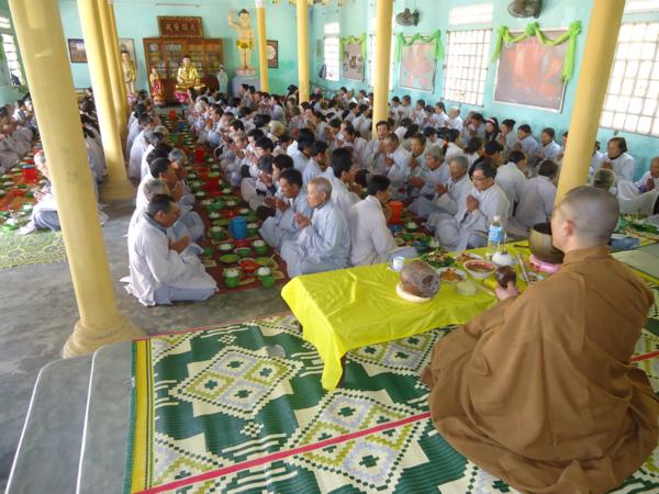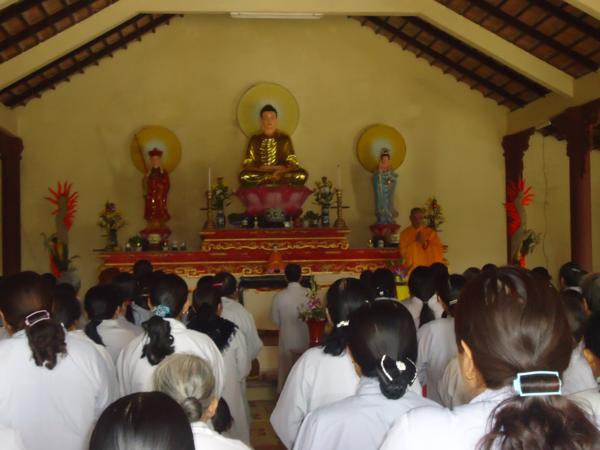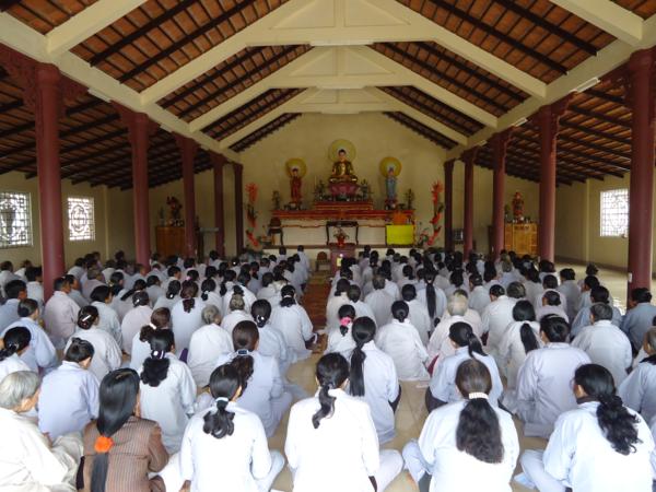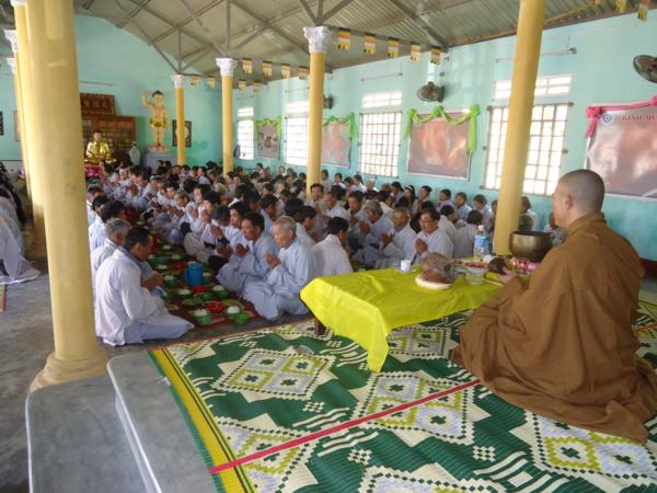 Hơn 300 trăm đạo hữu tham dự khóa tu trong đó có 60 đạo hữu dân tộc Pako và Katu cũng đến tu học. Sau phần truyền giới Bát quan trai của Đại đức Thích Tâm Phương, đạo tràng đã trang nghiêm cung thỉnh TT. Thích Huệ Phước quang lâm thuyết giảng với đề tài: “Hộ quốc an dân”. Toàn thể đại chúng như được tắm trong dòng suối mát với những ngôn từ cụ thể, áp dụng thực tế trong cuộc sống thường nhật của người Phật tử tại gia, đặc biệt nơi vùng cao của đồng bào dân tộc thiểu số. Đại chúng đã lắng lòng nghe pháp gần 2 giờ đồng hồ mà còn cảm thấy nuối tiếc khi thời gian đã đến giờ ngọ trai.