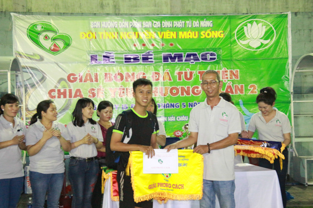 Phát biểu tại buổi lễ bế mạc, HTr cấp Tấn Tâm Lập Lê Hà Thọ – Phó ban TT BHD PB GĐPT Đà Nẵng, Trưởng ban điều hành Đội TNV máu sống GĐPT Đà Nẵng, Trưởng ban tổ chức giải đã có lời tri ân Chư Tôn Đức, các nhà hảo tâm, lãnh đạo và các cầu thủ tham gia giải, các cổ động viên, các cơ quan thông tấn báo chí, công an quận Hải Châu, y bác sĩ phòng công tác xã hội bệnh viện Đà Nẵng, Hội nghệ sĩ Phật tử Đà Nẵng và các ca sĩ Ngọc Nhung, Trịnh Nguyễn Hồng Minh, Nhóm Sen Trắng đã ủng hộ tích cực và đồng hành cho sự thành công của giải.