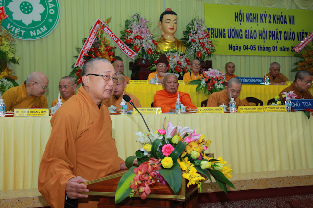 Cuối chương trình, HT. Thích Trí Quảng – Phó chủ tịch HĐTS, thay mặt cho Chủ tọa đoàn phát biểu đúc kết phiên họp. Hội nghi trung ương GHPGVN kỳ 2 khóa VII đã diễn ra thành công tốt đẹp trong niềm hoan hỹ và thắm tình đạo vị.