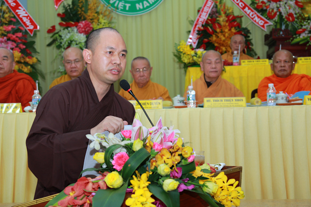 ĐĐ. Thích Đồng Ngộ – Phó thường trực Ban kinh tế tài chánh, báo cáo về vấn đề thu chi tài chánh