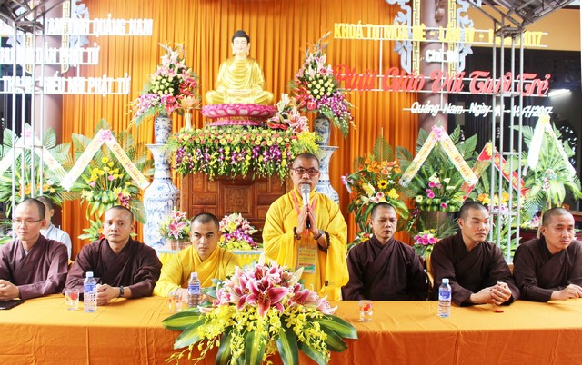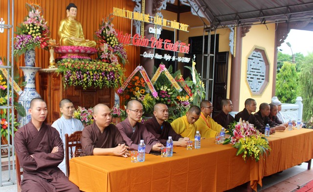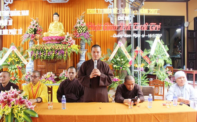Cuối buổi lễ, ĐĐ.Thích Viên Quán, Phó thư ký BTS – Phó ban HDPT PG tỉnh phát biểu đạo từ biểu dương tinh thần của chư tôn đức trong BTC và các khóa sinh, dù thời tiết không thuận lợi nhưng vẫn cố gắng tổ chức khóa tu thành tựu.