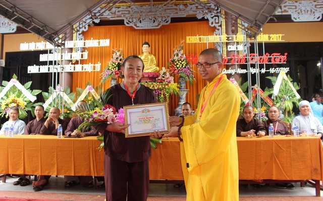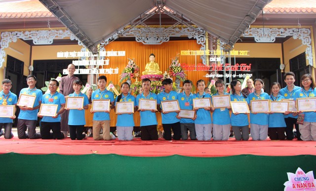 Tại buổi lễ, Ban Tổ chức khóa tu đã trao những phần thưởng cho các em khóa sinh đạt giải xuất sắc, tặng giấy khen và quà cho tập thể, cá nhân tình nguyện viên trợ duyên cho khóa tu thành tựu viên mãn, và đồng thời gởi lời tri ân đến chư tôn đức lãnh đạo Giáo hội, chính quyền các cấp, phật tử hão tâm, mạnh thường quân xa gần đã quan tâm ủng hộ khóa tu lần này.