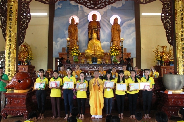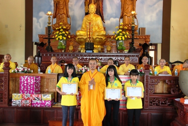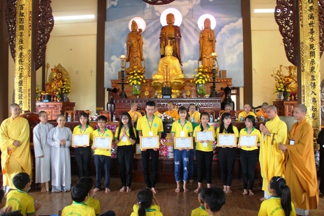 Theo đó, lễ phát thưởng và tặng bằng khen cho các cá nhân tập thể xuất sắc trong khóa tu. Đồng thời gởi lời tri ân đến Chư Tôn Đức Tăng Ni và quý Phật tử mạnh thường quân xa gần, các Phật tử tình nguyện viên đã đóng góp cho sự thành công viên mãn của khóa tu mùa hè năm 2017 này.