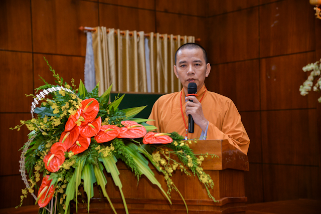 ĐĐ.Thích Minh Nhựt báo cáo tại lễ bế mạc hội thi – Ảnh: Đăng Huy