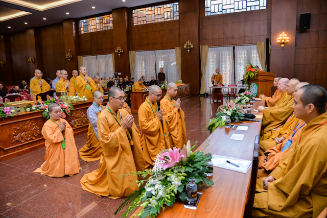 Các hành giả Tăng Ni tác bạch tri ân chư tôn đức – Ảnh: Đăng Huy