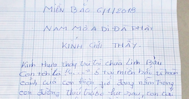 Nội dung trong thư viết rằng: Kính thưa Thầy trụ trì chùa Linh Bửu, con tên là “…” ở tại miền bắc, vì hoàn cảnh của con hiện giờ đang nằm trong con đường thiếu trước hụt sau, chồng suốt ngày chủi mắn, đánh đập…