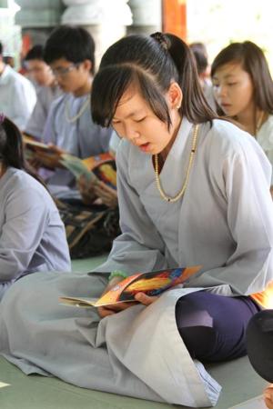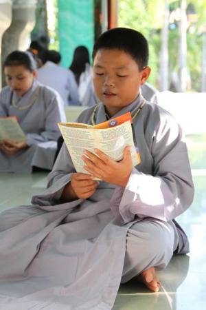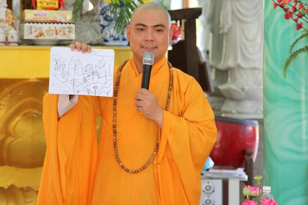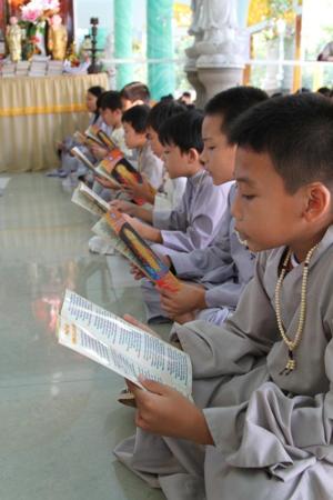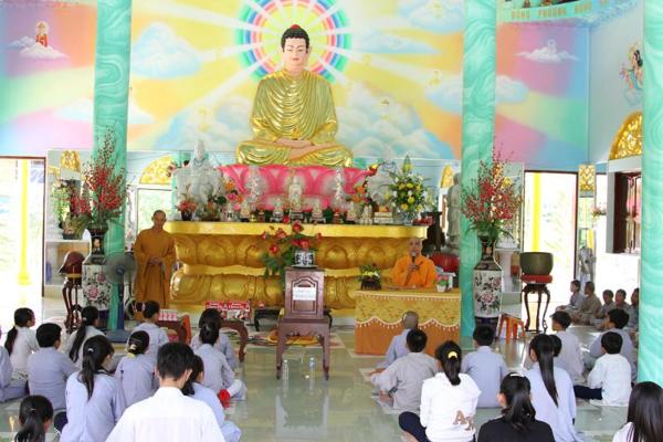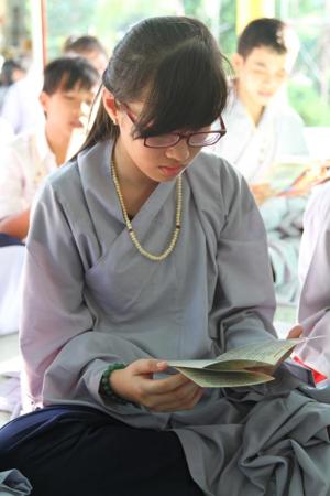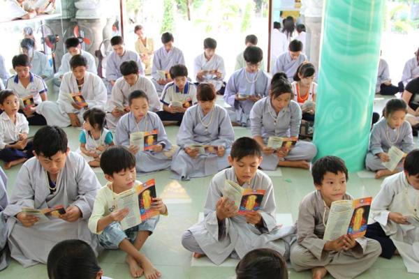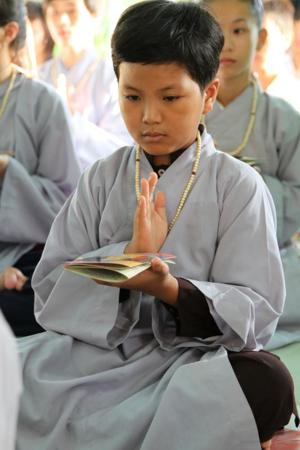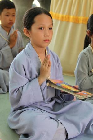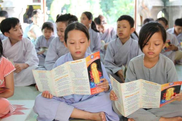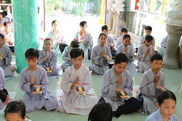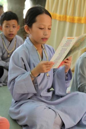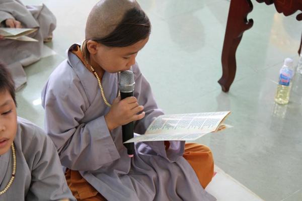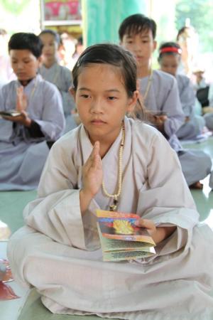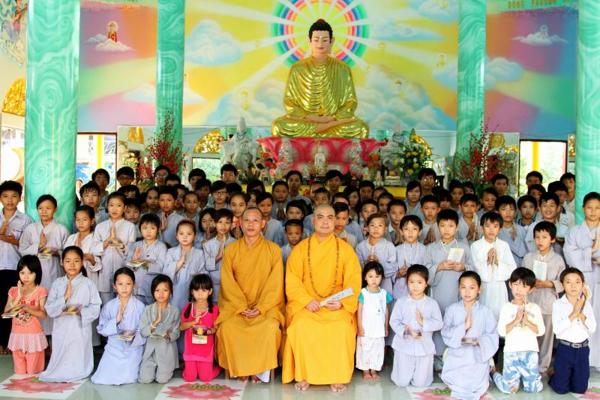 Gần 100 em thanh thiếu nhi Phật tử đã lắng tâm thính pháp và học hỏi được nhiều điều bổ ích : “Miệng ta là hoa sen, mỗi khi ta hé nở, đem hương thơm Phật pháp, gieo mầm giác cho đời”