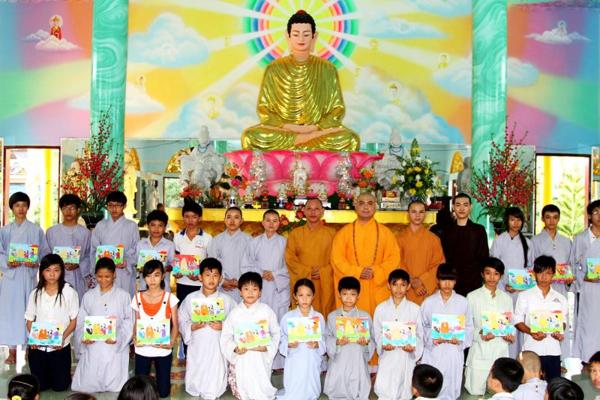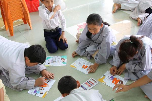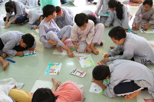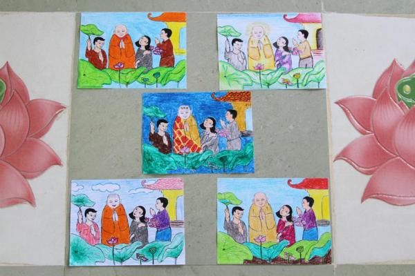 Cuối cùng là thi tô màu các bức tranh với nội dung Thầy trò cùng tu tập dưới mái Chùa yêu thương. Các bức tranh này do chính các em khóa sinh trang trí và là tặng phẩm quý báu của chính các em sẽ dành tặng cho cha mẹ sau khi kết khóa trở về nhà với gia đình.