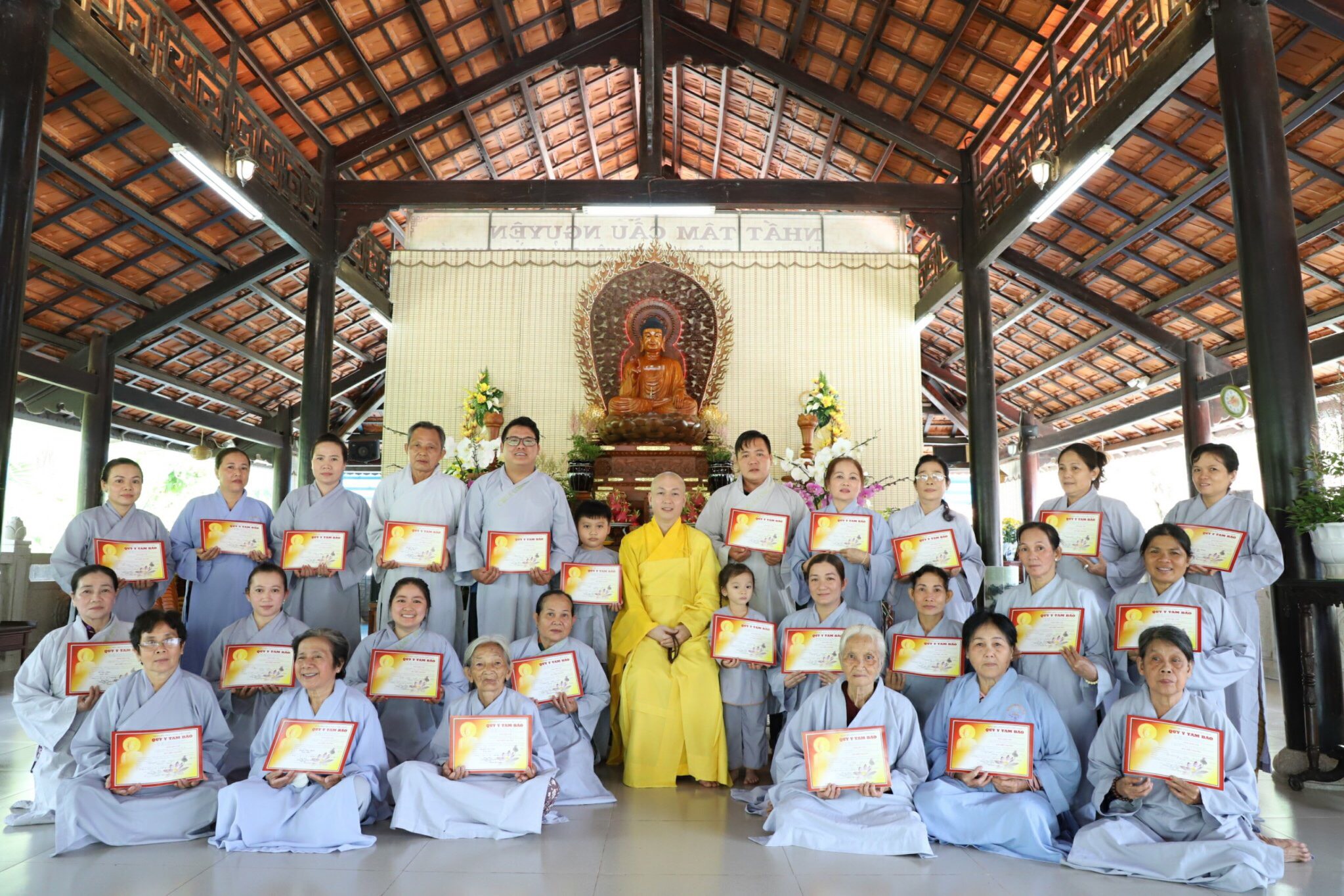 Trước đó, Đại đức Thích Huệ Định cũng đã cử hành lễ truyền Tam Quy Ngũ Giới cho 35 vị.