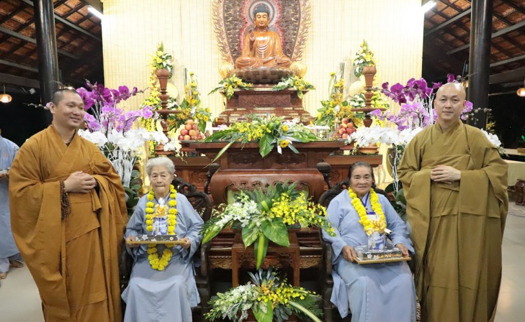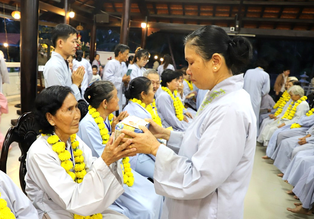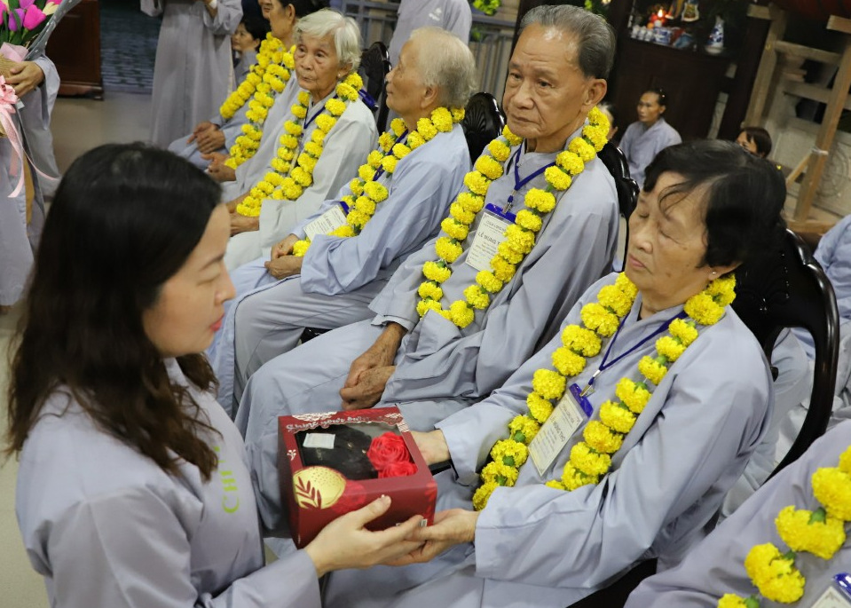 Tại buổi lễ, chư tôn đức cũng đã trao quà mừng thọ của đạo tràng gửi đến 30 cụ già 70 tuổi là Phật tử sinh hoạt tu học tại bổn tự.