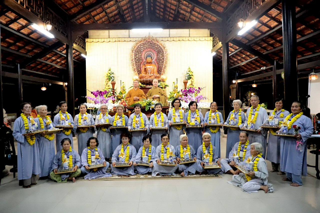 Tại buổi lễ, chư tôn đức cũng đã trao quà mừng thọ của đạo tràng gửi đến 30 cụ già 70 tuổi là Phật tử sinh hoạt tu học tại bổn tự.