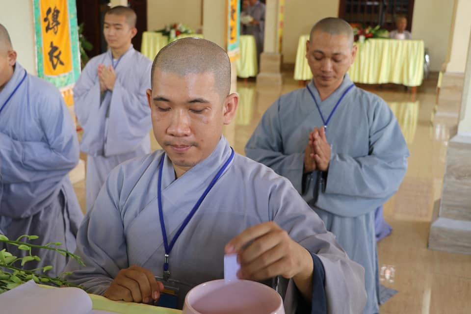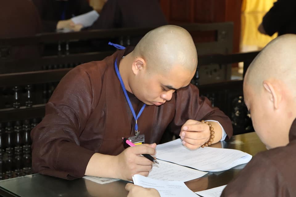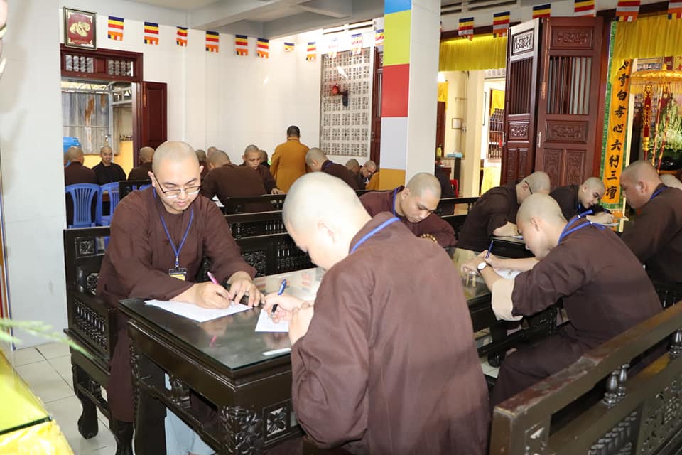 Tiếp đó, ngày 01/06/2020 (nhằm ngày 10/04/Canh Tý), giới tử Tăng Ni tham dự thi trắc nghiệm và khảo hạch tại chùa Viên Minh. Ban tổ chức công bố danh sách giới tử trúng tuyển và tiến hành nghi thức sám hối, trụng luật trường hàng.