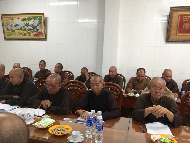 HT. Thích Nhựt Tấn – UV TT HĐTS T.Ư GHPGVN, Trưởng BTS GHPGVN tỉnh Bến Tre làm chủ tọa; cùng với toàn thể thành viên BTS tham dự Hội nghị.