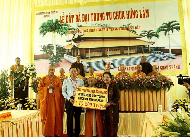 Tại buổi lễ, BTC đã tiếp nhận phần hỷ cúng xây dựng của chư tôn đức và các mạnh thường quân trao tặng tới NT.TN Như Đán. Sau đó, chư tôn đức đã niêm hương, sái tịnh và đặt viên đá đầu tiên khởi công trùng tu chùa Hưng Lâm trong tiếng chú nguyện, niệm kinh của chư tôn đức chứng minh và Phật tử.