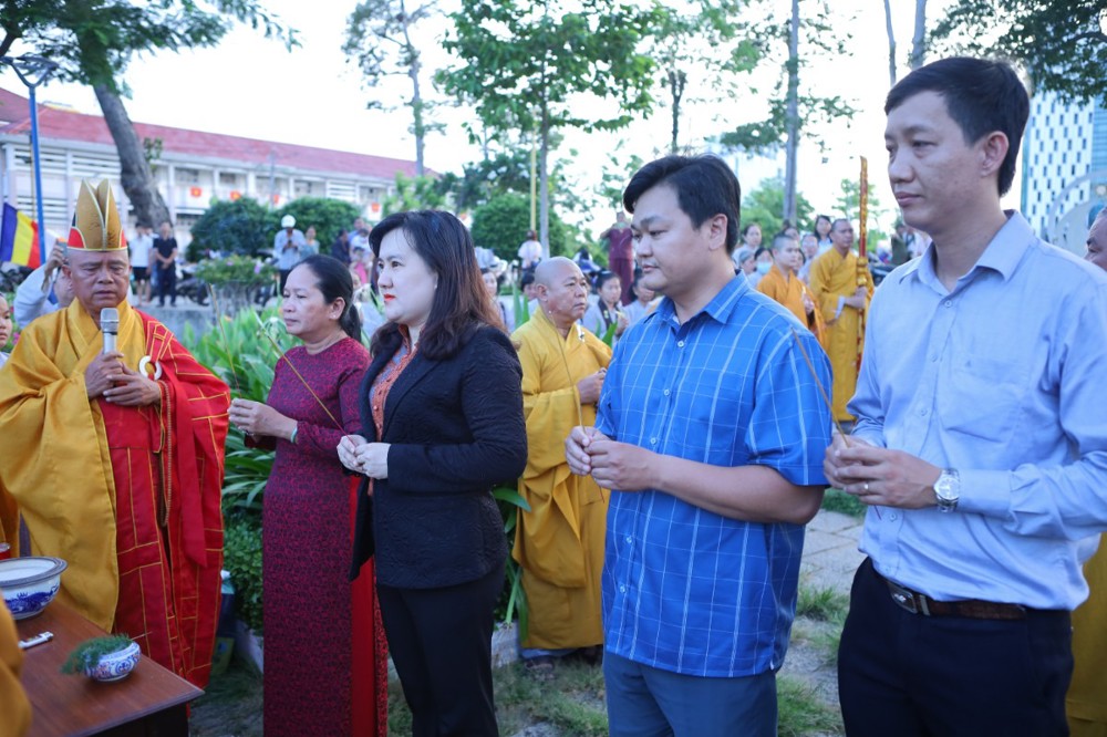 Tham dự buổi lễ có Bà Đặng Thị Phượng – Phó Chủ tịch Ủy ban Mặt trận Tổ quốc Việt Nam tỉnh; Trung tá Nguyễn Thanh Vũ – Đội trưởng phòng An ninh Nội địa Công an tỉnh; Ông Hà Văn Tài – Chuyên viên phòng tôn giáo dân tộc tỉnh; Bà Nguyễn Thị Kim Chi – Chủ tịch Ủy Ban Nhân dân phường An Hội; Cùng Quý vị đại diện các ban ngành và đông đảo Phật tử tham dự.