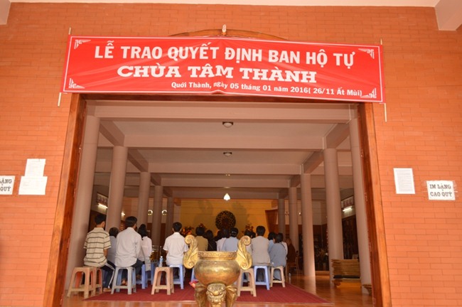 Tại buổi lễ ban thư kí thay mặt BTT BTS Huyện đọc Quyết Định Bổ Nhiệm Ban Hộ Tự Chùa Tâm Thành.